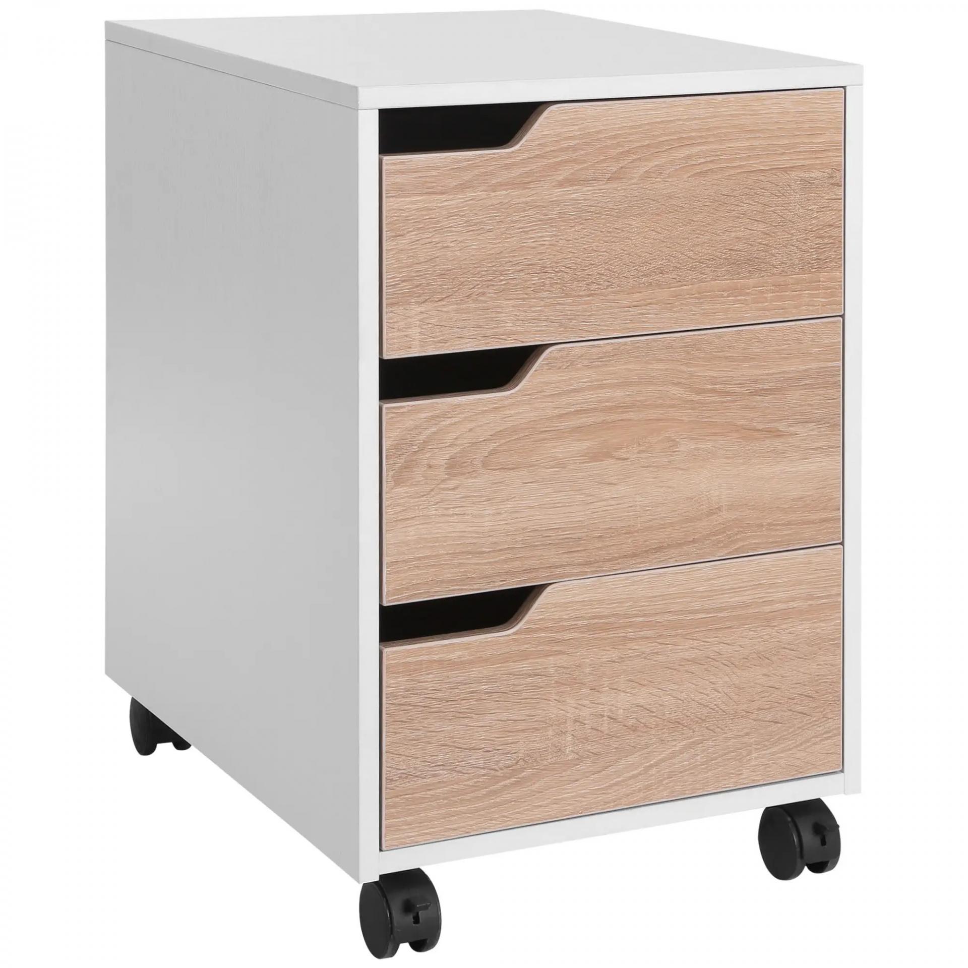 Cajonera de Oficina con Ruedas Mueble Archivador con 3 Cajones Cajonera para Escritorio Estudio 40x50x57,5 cm Roble y Blanco