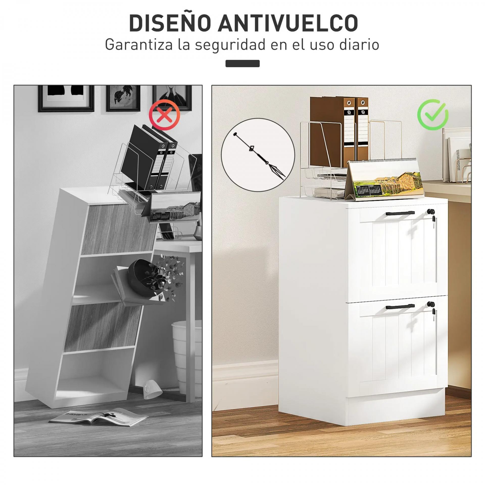 - - SEGURIDAD PARA ARCHIVOS CONFIDENCIALES: La cajonera para escritorio dispone de dos cajones con cerradura independiente, cada uno con dos llaves, para proteger tus documentos más importantes. Además, el anti-vuelco permite fijarlo a la pared con seguridad