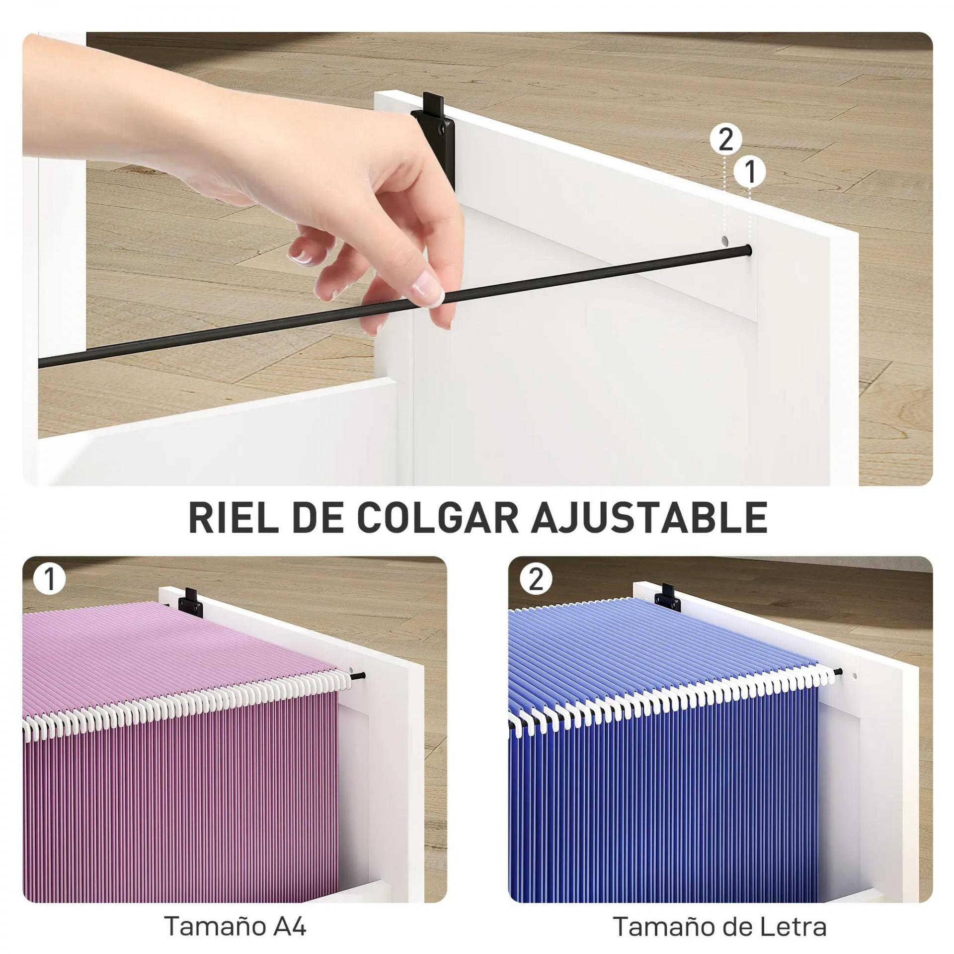 - - ARCHIVADO FLEXIBLE PARA DOCUMENTOS A4 Y LETTER: Cada cajón del mueble archivador cuenta con riel colgante ajustable para adaptarse tanto a carpetas tamaño carta como A4, permitiendo configurar el interior según tus necesidades y mantener todo siempre accesible