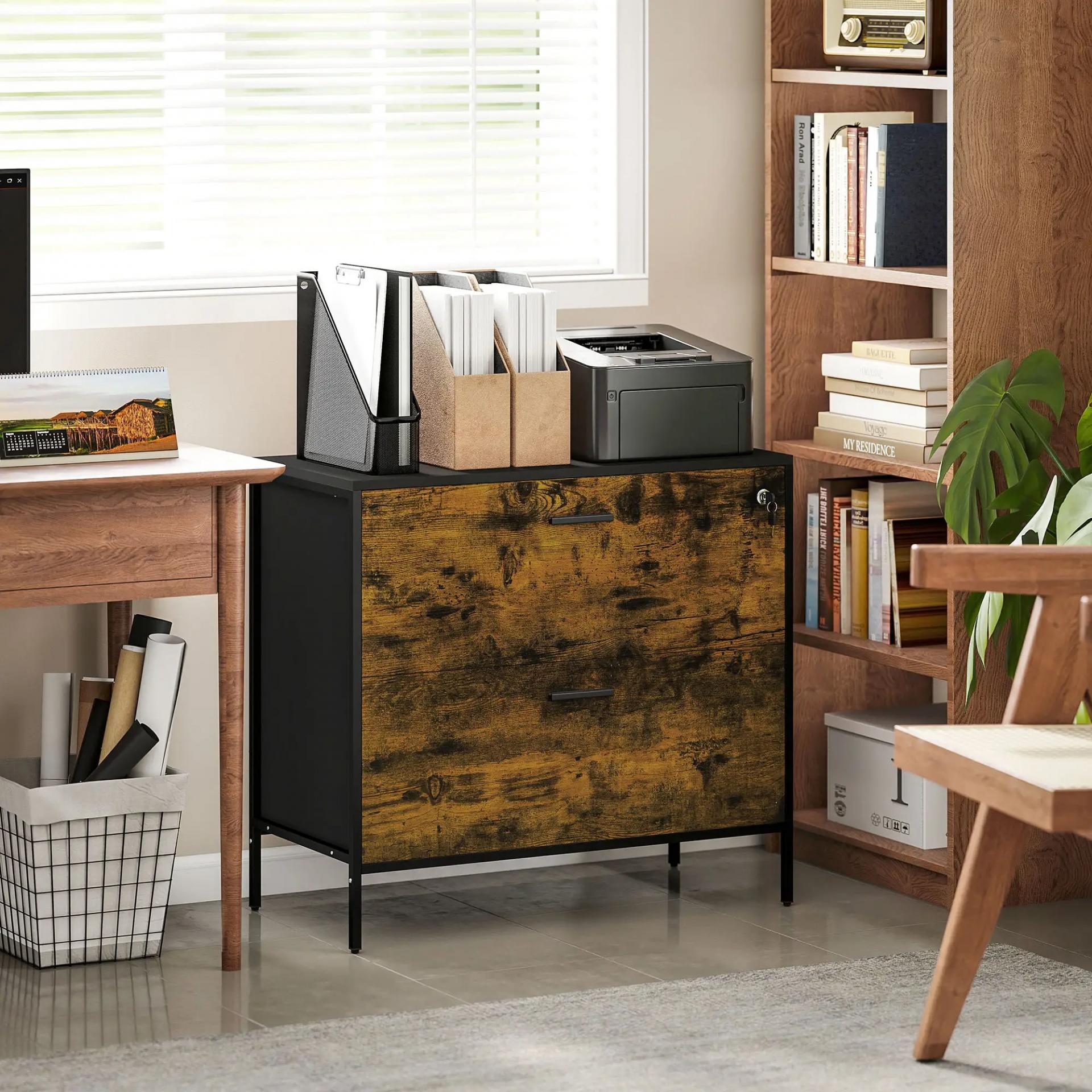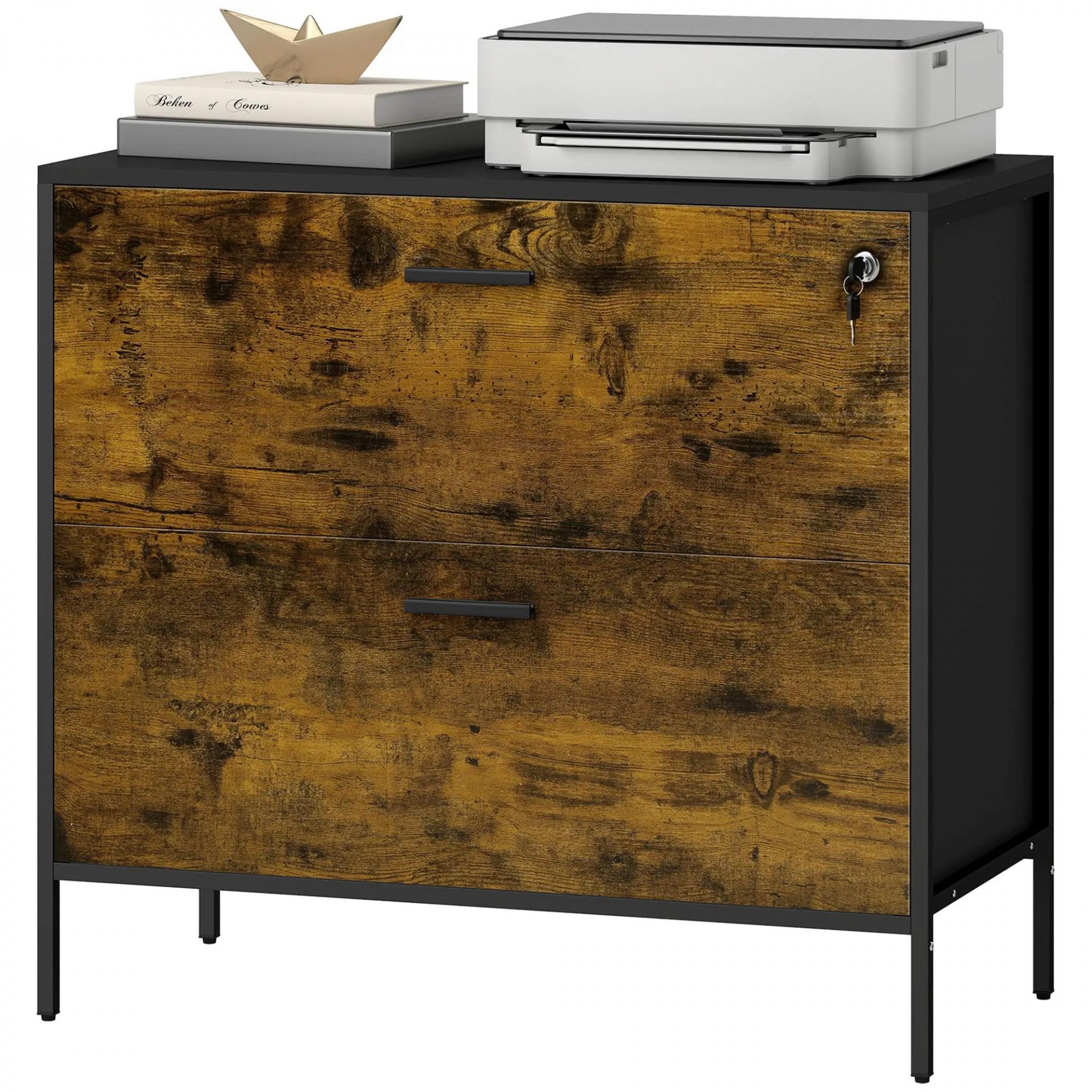 Cajonera de Oficina con 2 Cajones Cajonera para Archivadores con Cerradura y Carpetas Colgantes 80x39x73,5 cm Marrón