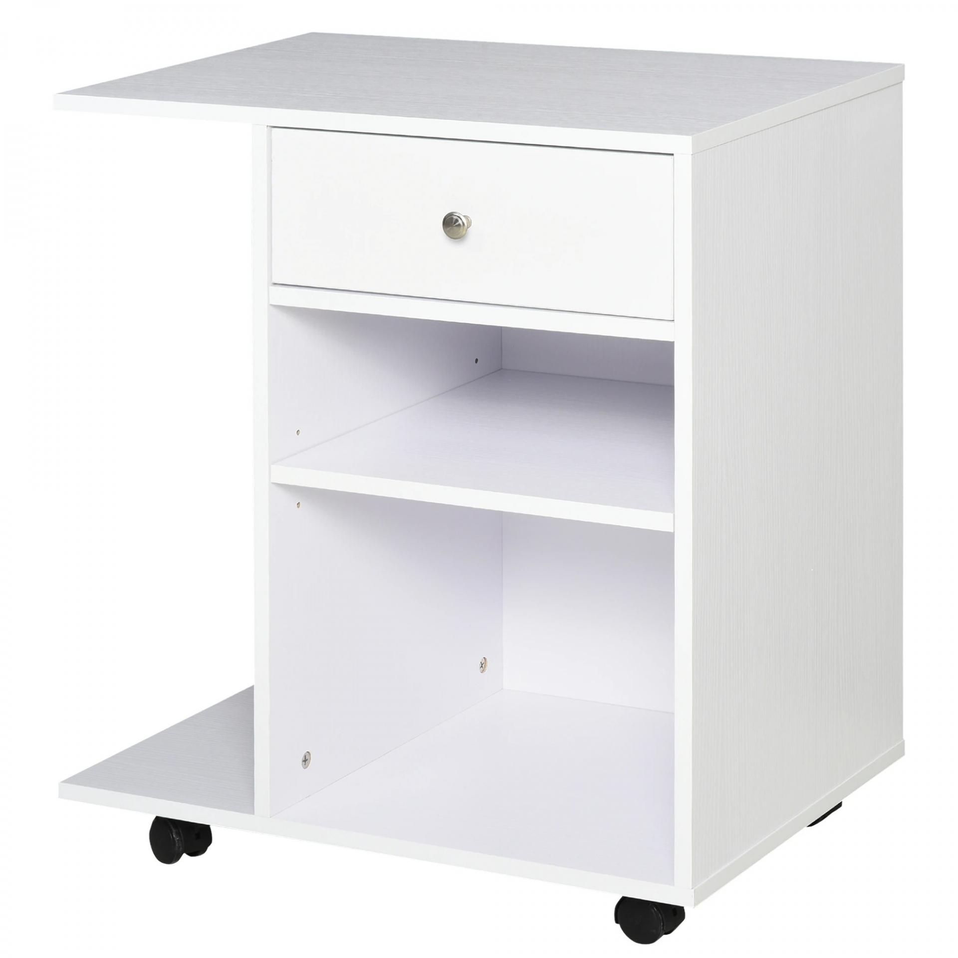 Armario para Impresora de Oficina Carro Multifuncional con Ruedas 2 Compartimentos Cajón y Soporte para CPU Estante Ajustable para Estudio 60x40x68,5 cm Blanco Veteado de Madera