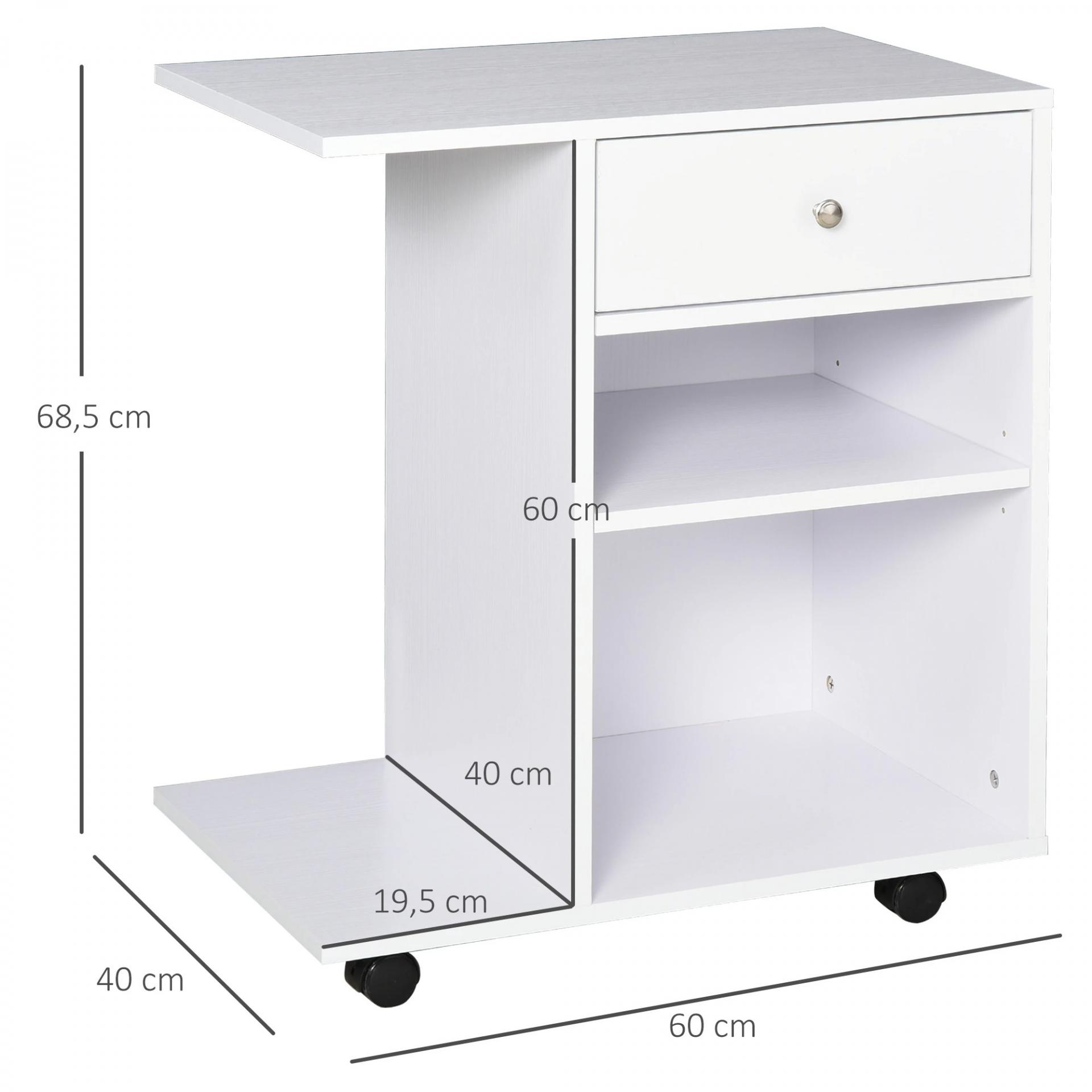 - - MEDIDAS TOTALES: 60x40x68,5 cm (LxANxAL); Medidas interiores del cajón: 31x28x7,5 cm (LxANxAL); Peso máximo soportado: 3 kg (cajón), 10 kg (estante), 60 kg (total)