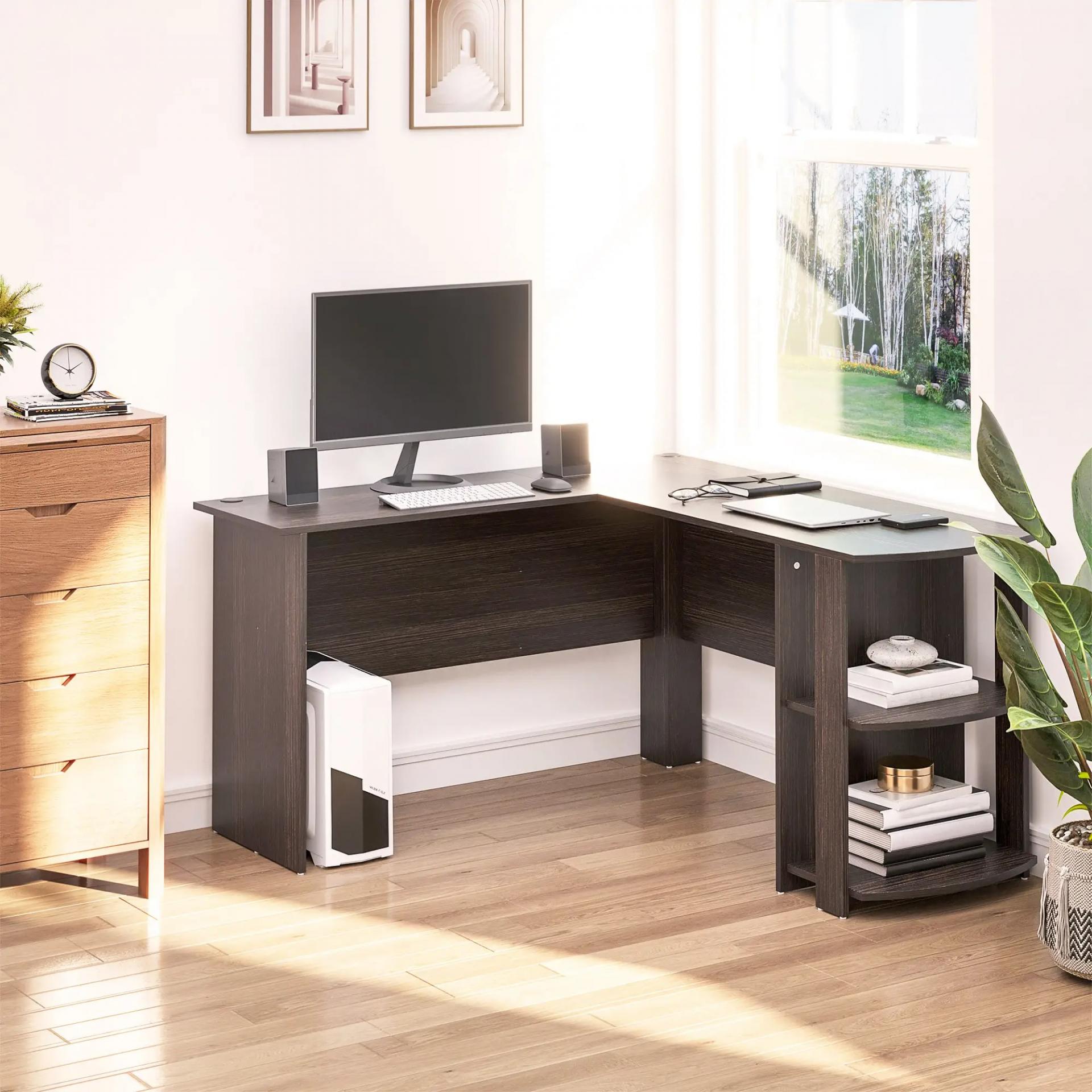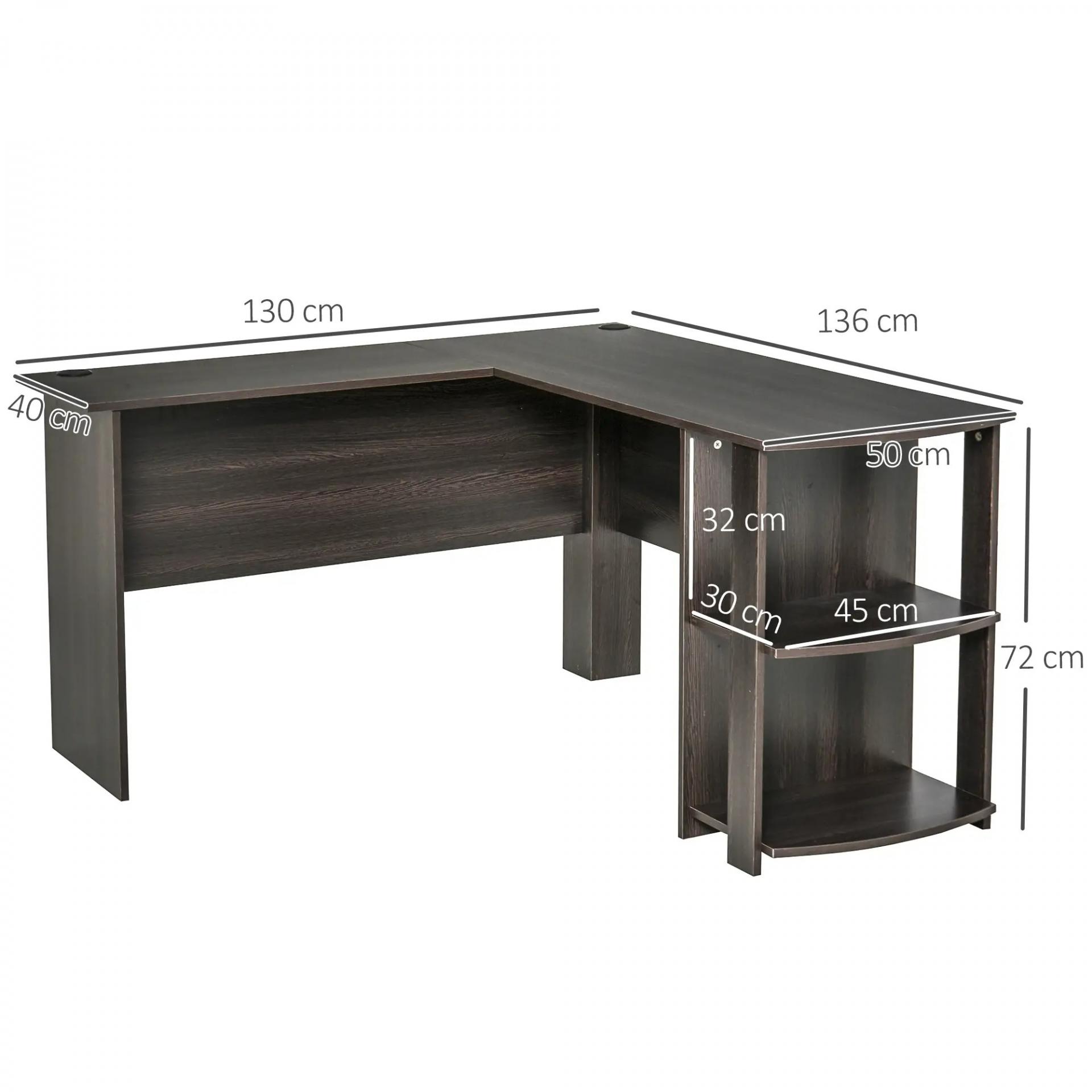 Mesa de Ordenador PC Escritorio para Oficina Hogar Tipo Esquinera Forma L con Estantes 136x130x72cm Madera