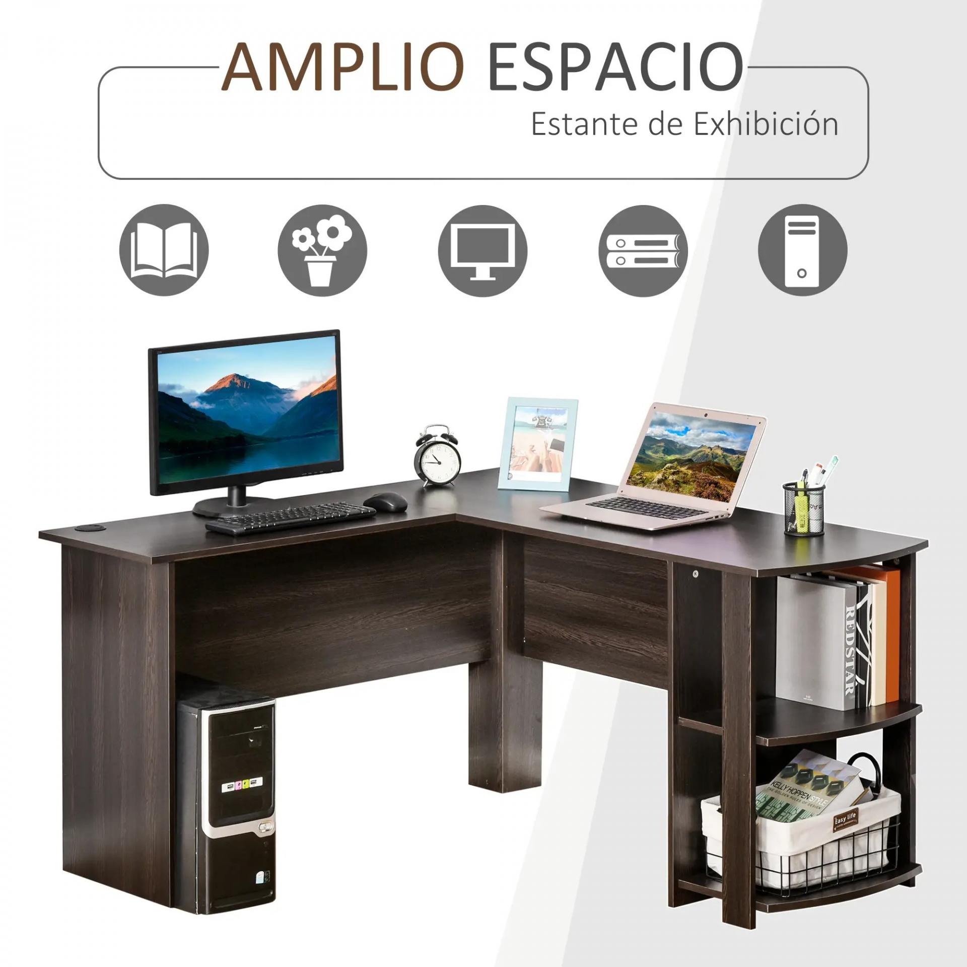 - - APROVECHA EL ESPACIO: Diseño en forma de L, ideal para colocar en una esquina y poder ahorrar espacio. Muy útil para habitaciones con espacio limitado. Amplia superficie para poder tener el ordenador, monitor, impresora, etc.