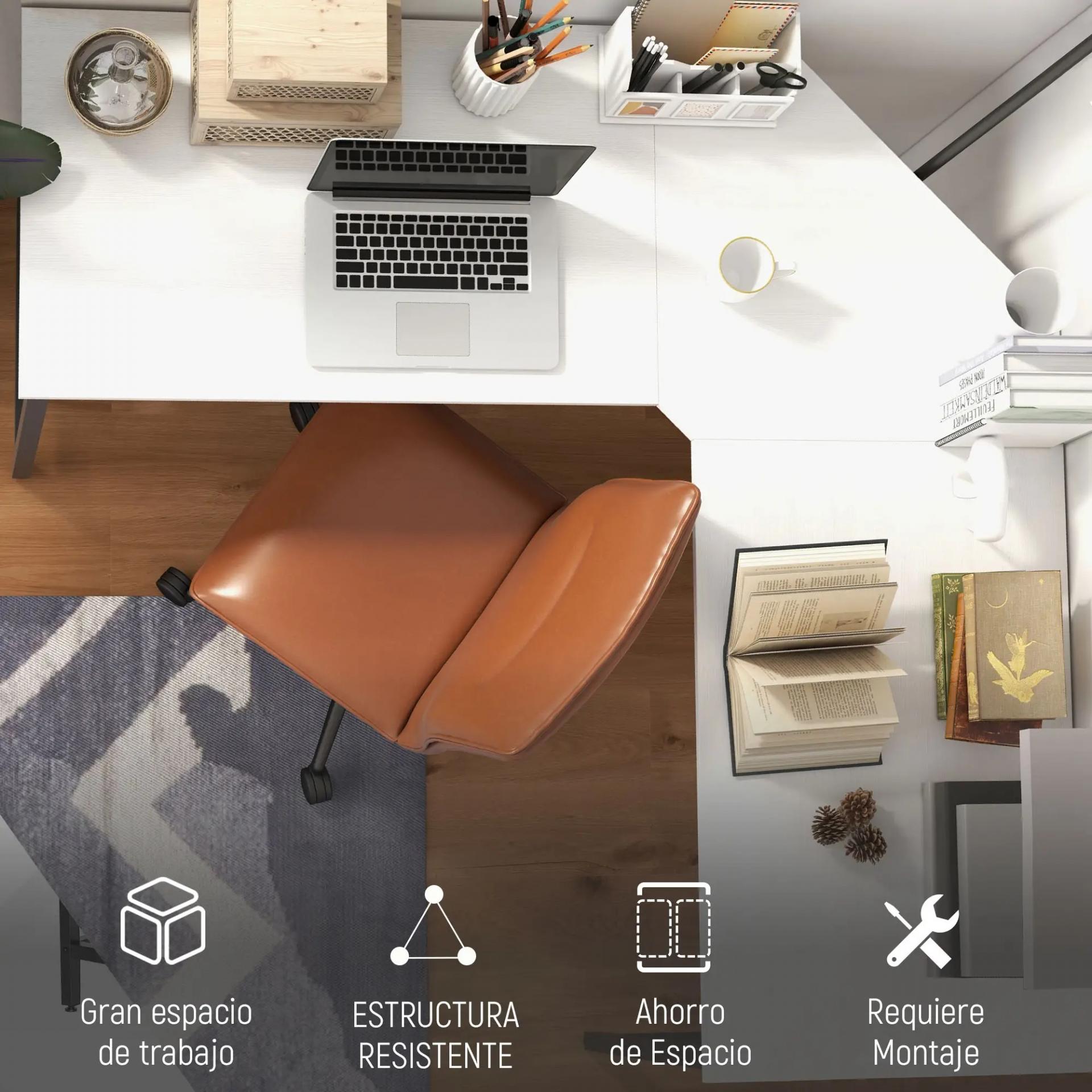 - - ESTRUCTURA RESISTENTE: Fabricada en melamina de madera con un grosor de 15 mm y estructura de metal, esta mesa en L, es resistente e ideal para un uso prolongado. Además, es fácil de limpiar con un paño húmedo