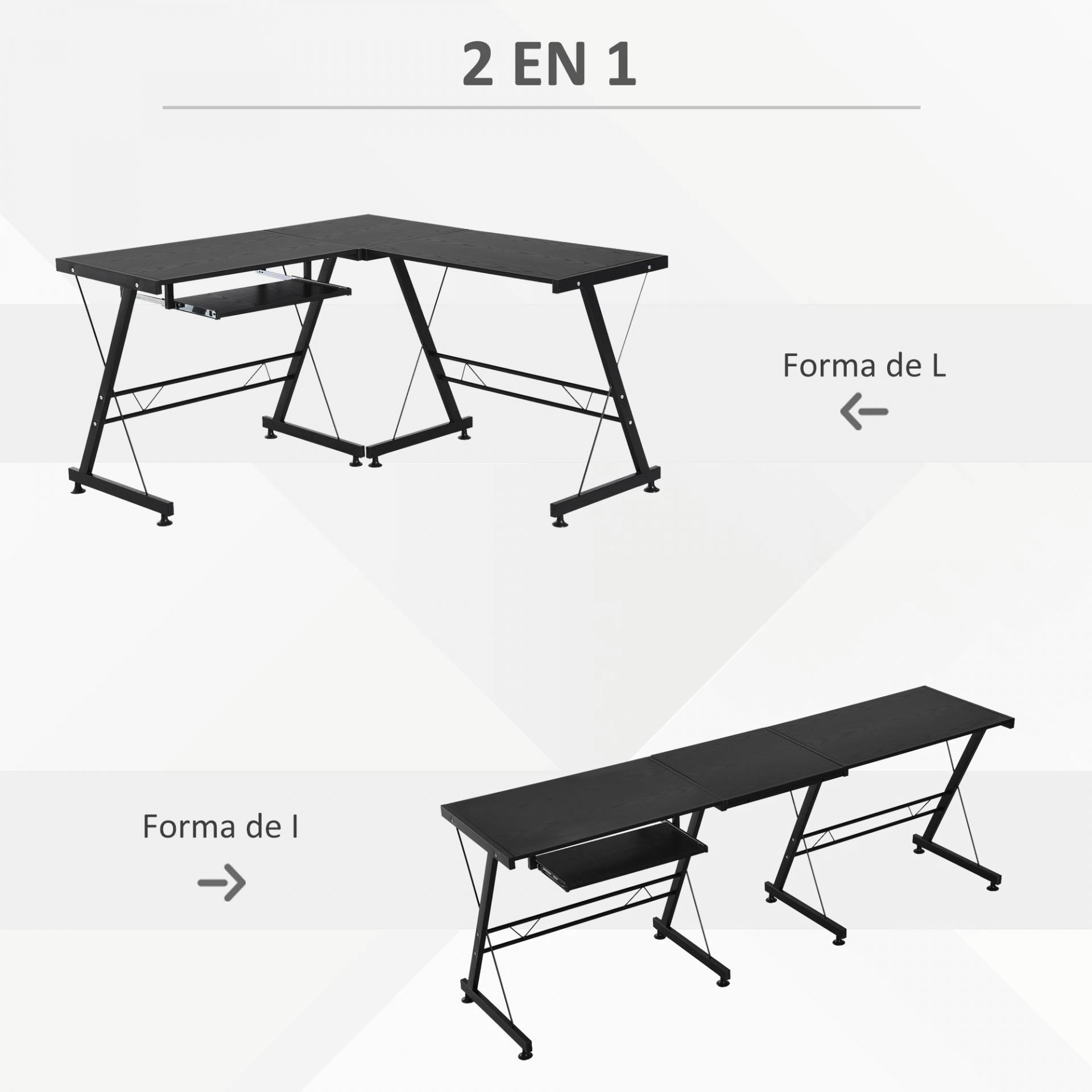 - - 2 TABLEROS CONVERTIBLES: Este escritorio esquinero se puede usar como una estación de trabajo en forma de L para esos pequeños espacios de trabajo, o si se necesita, puede convertirse en un escritorio largo y recto, su diseño moderno lo hace perfecto para cualquier área interior