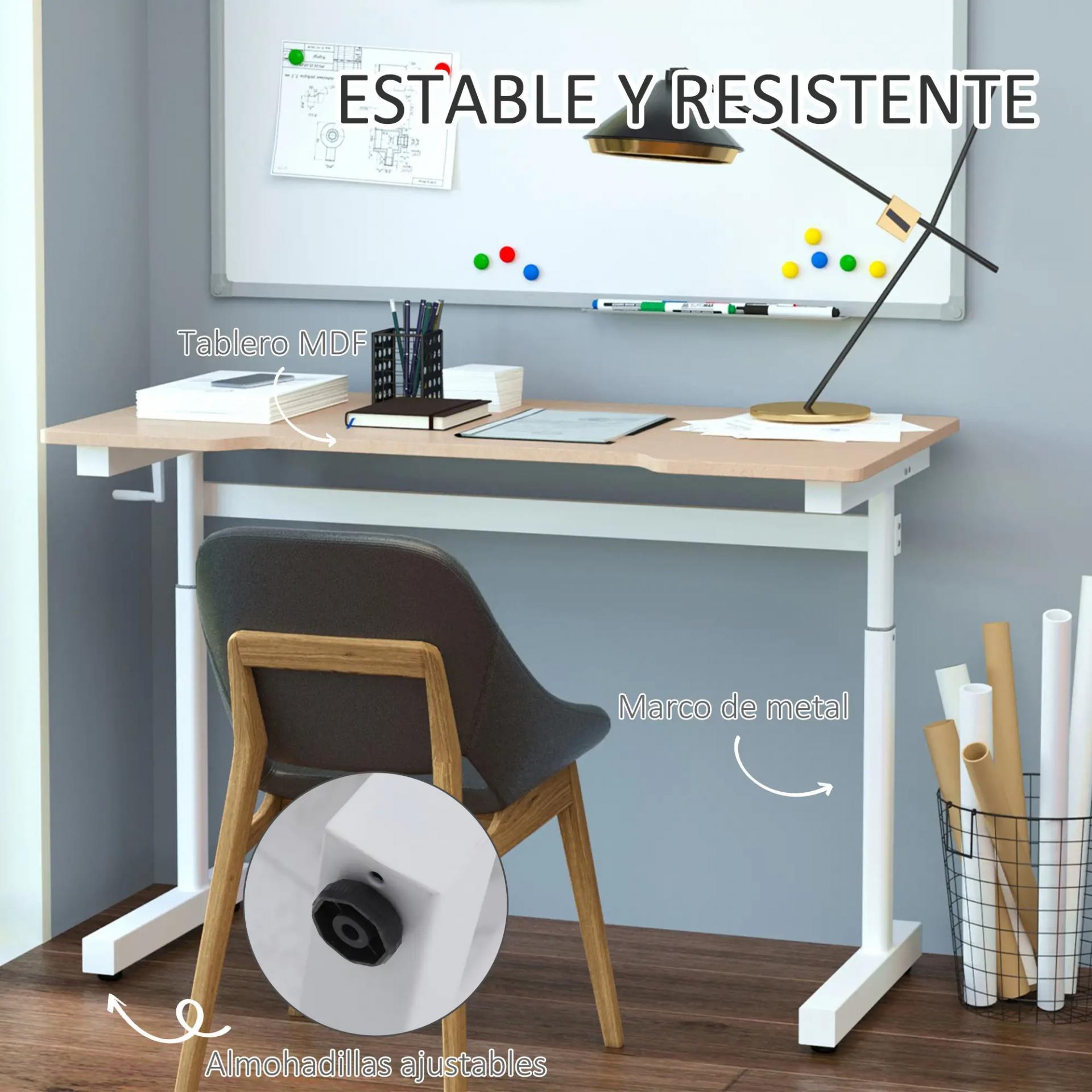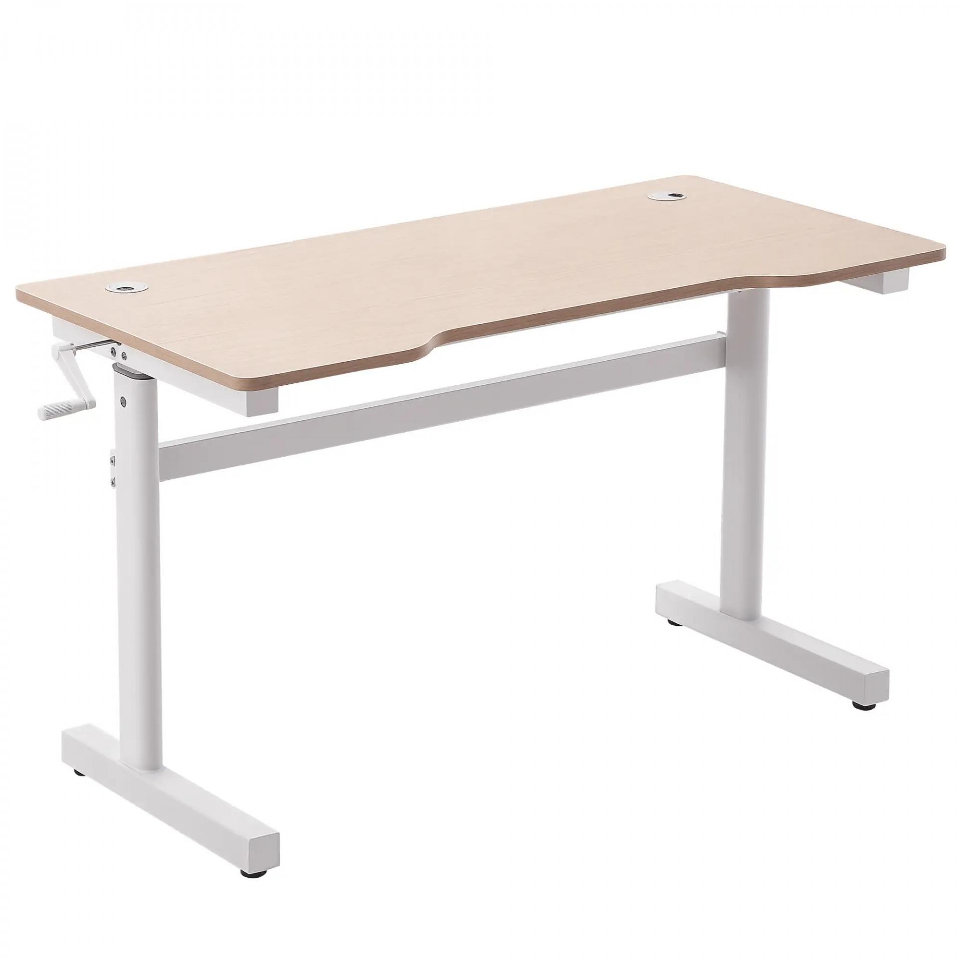 Escritorio de Pie 120x60x72-117 cm con Altura Ajustable Manual con Manivela Mesa para Ordenador para Oficina Estudio Salón Estilo Racing Carga 150 kg Natural