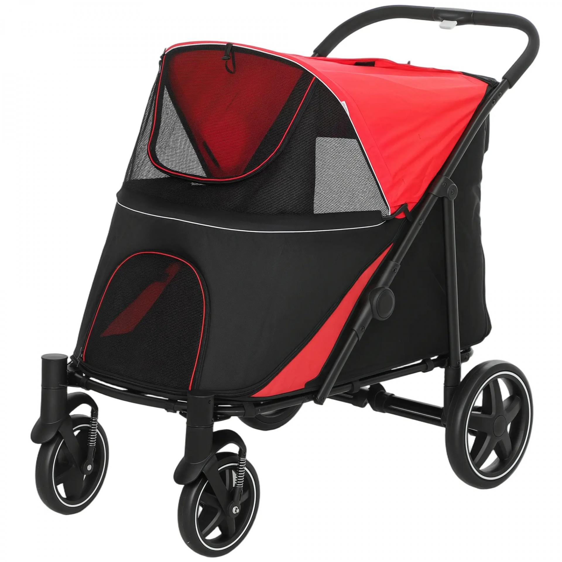 - - DISEÑO MEJORADO: El carro para perros cuenta con amortiguadores en el chasis para una conducción suave y ruedas traseras con frenos de pie para aparcar. El tejido Oxford 600D garantiza resistencia y durabilidad en condiciones exteriores