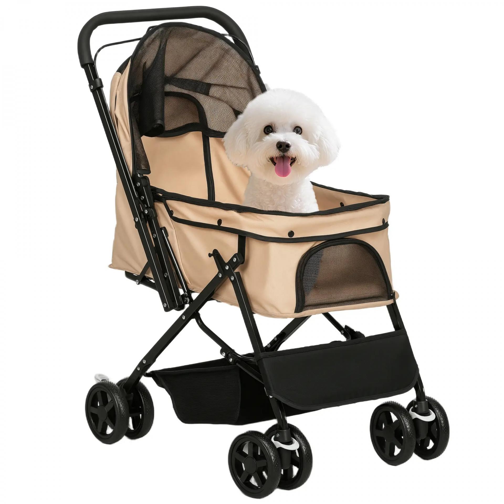 Carrito para Perros con Mango Reversible Cesta de Almacenamiento y Cuerda de Seguridad 76,5x52x95cm Marrón
