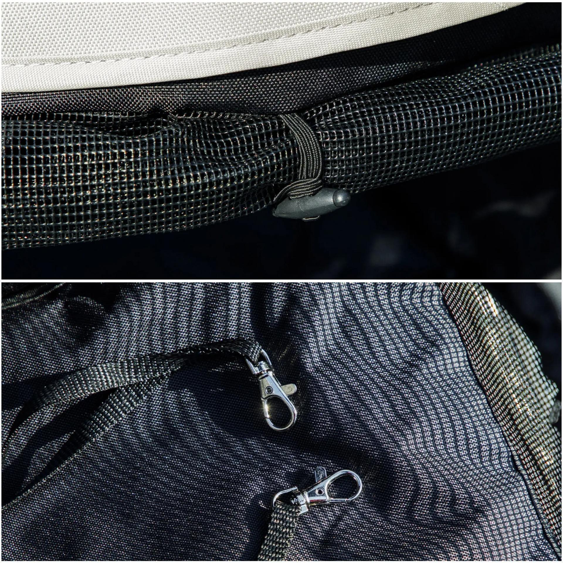 - - RESISTENTE Y SEGURO: Con marco de acero y tela Oxford 600D, este cochecito para perros y gatos proporciona un soporte seguro. Sus dimensiones interiores (42x30x59 cm) proporcionan un espacio cómodo y acogedor para mascotas pequeñas