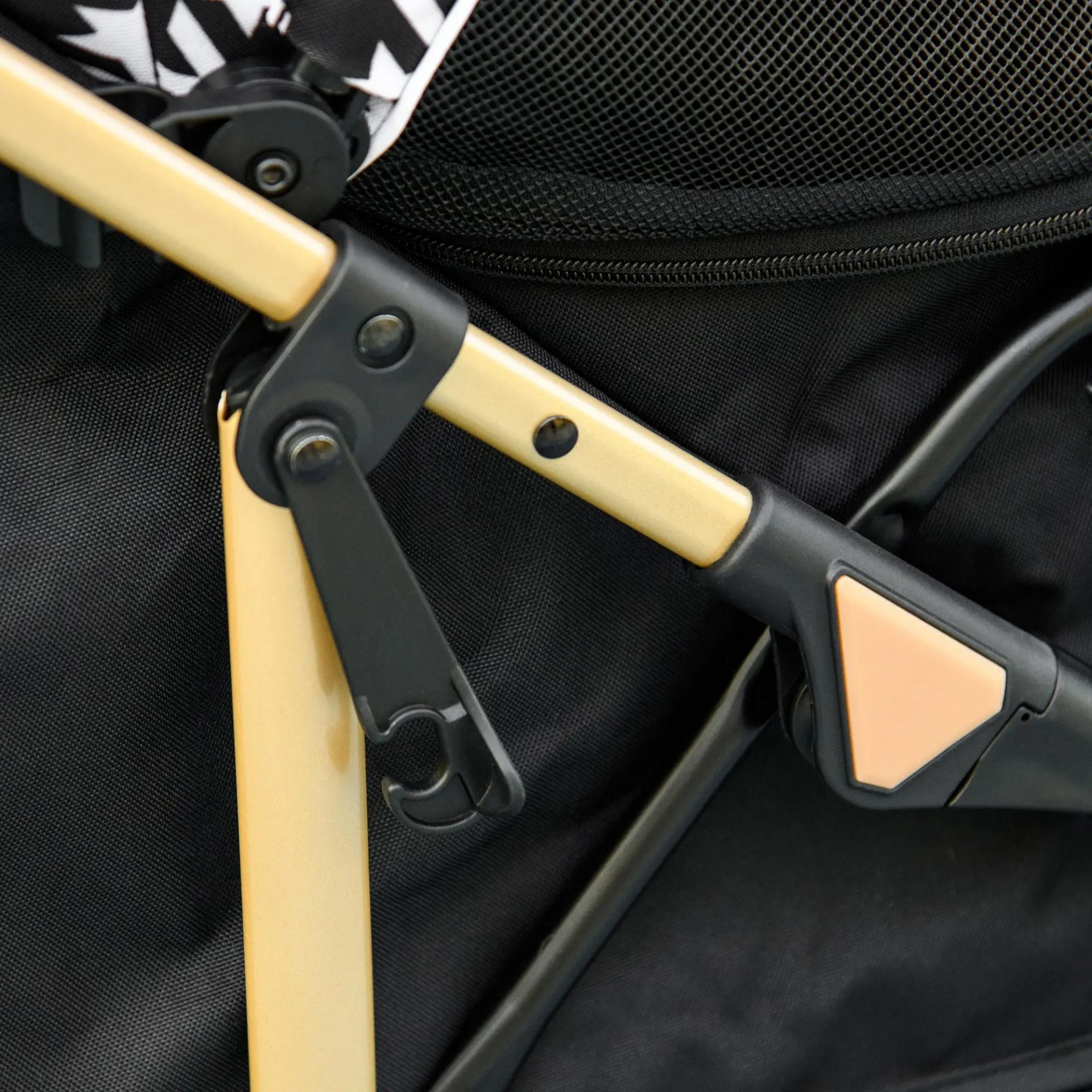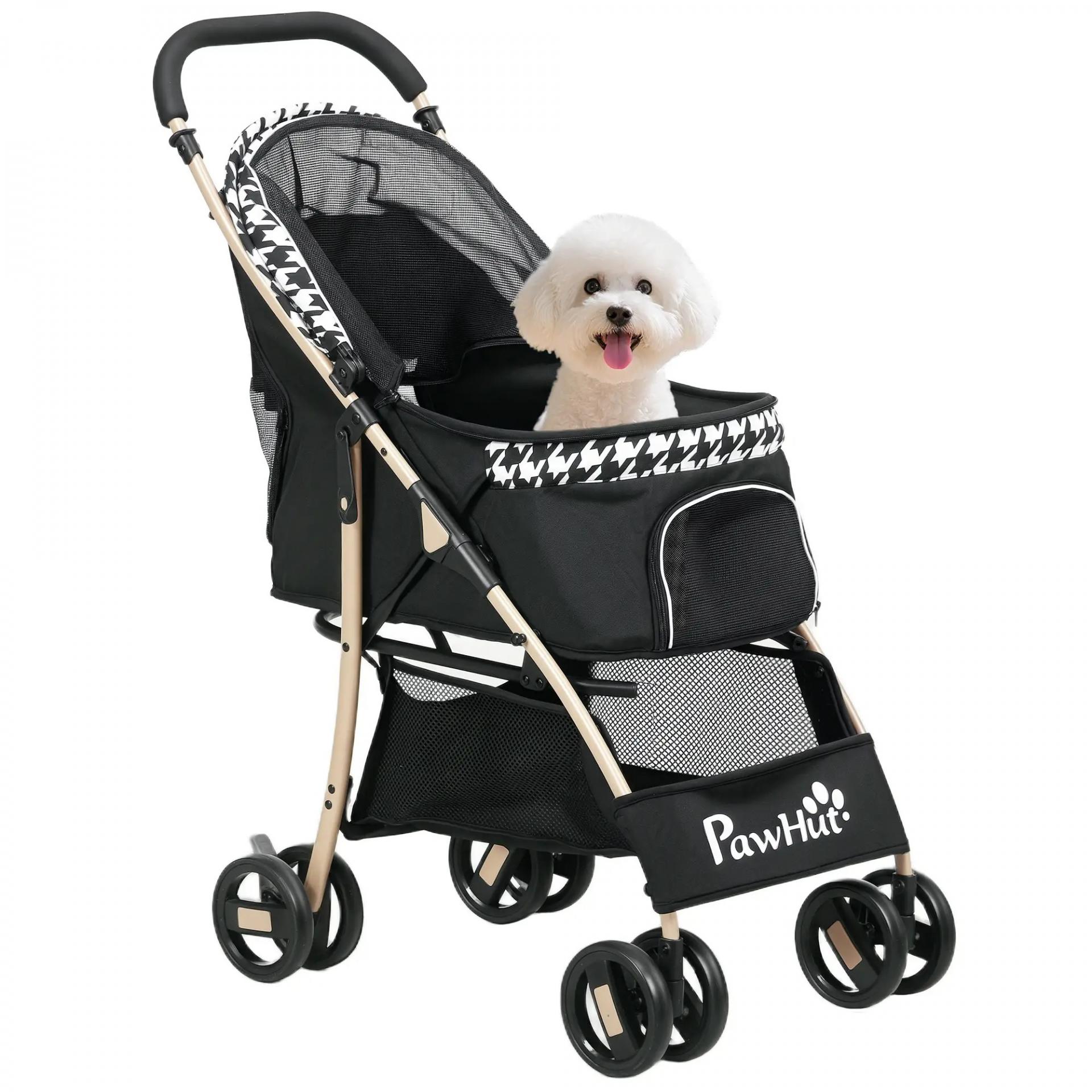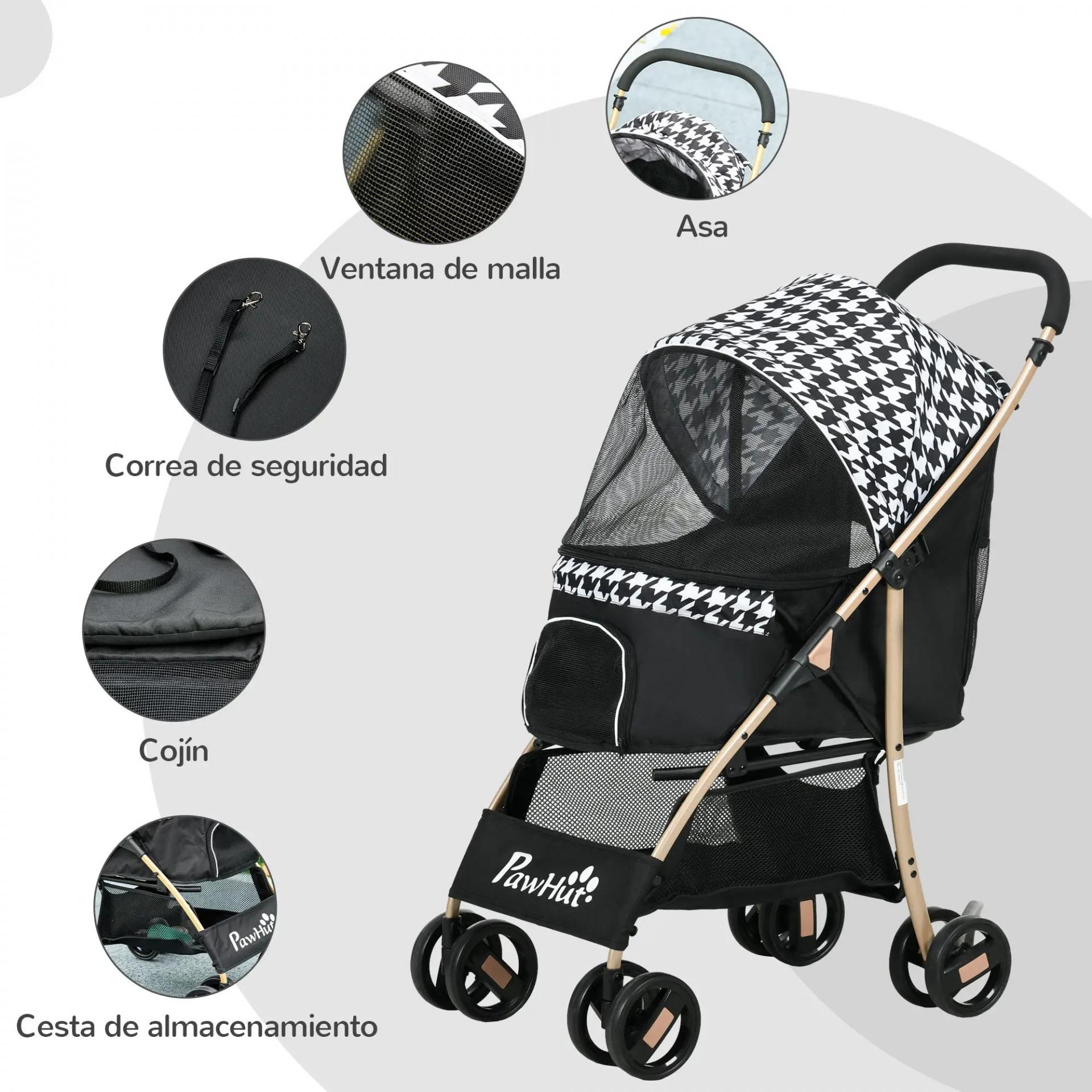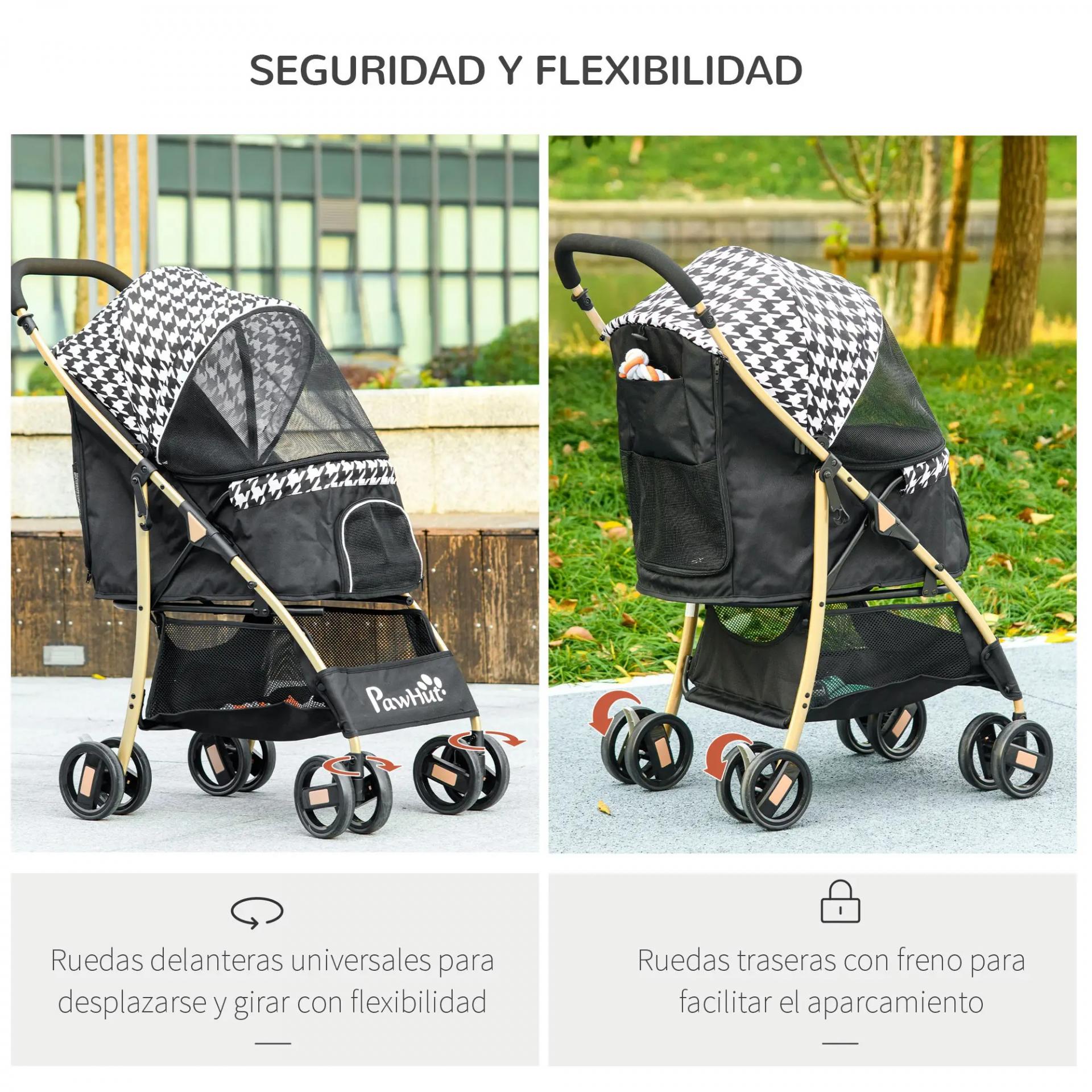 - CAPAZO AMPLIO: Este cochecito para perros tiene mucho espacio para que tus cachorros descansen, protegidos con una capota ajustable. Cuenta con una ventana de malla para que puedan respirar. La puerta con cremallera permite un fácil acceso. Incluye dos correas interiores para mayor seguridad. También es seguro para gatos sin riesgo de que se escapen accidentalmente