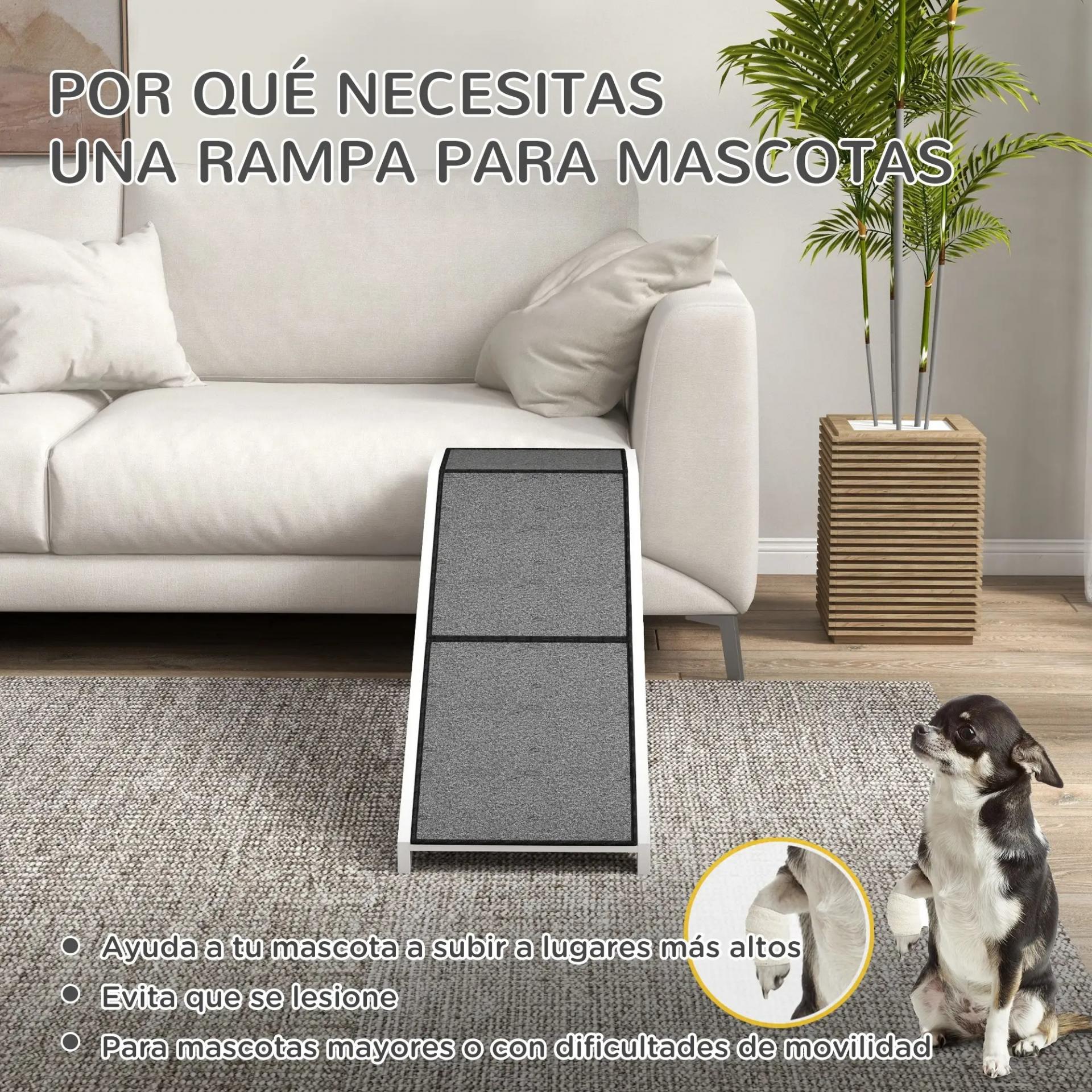 Rampa para Mascotas de Madera con Alfombra Antideslizante para Perros Pequeños o Mayores 152x40x50 cm Blanco y Gris