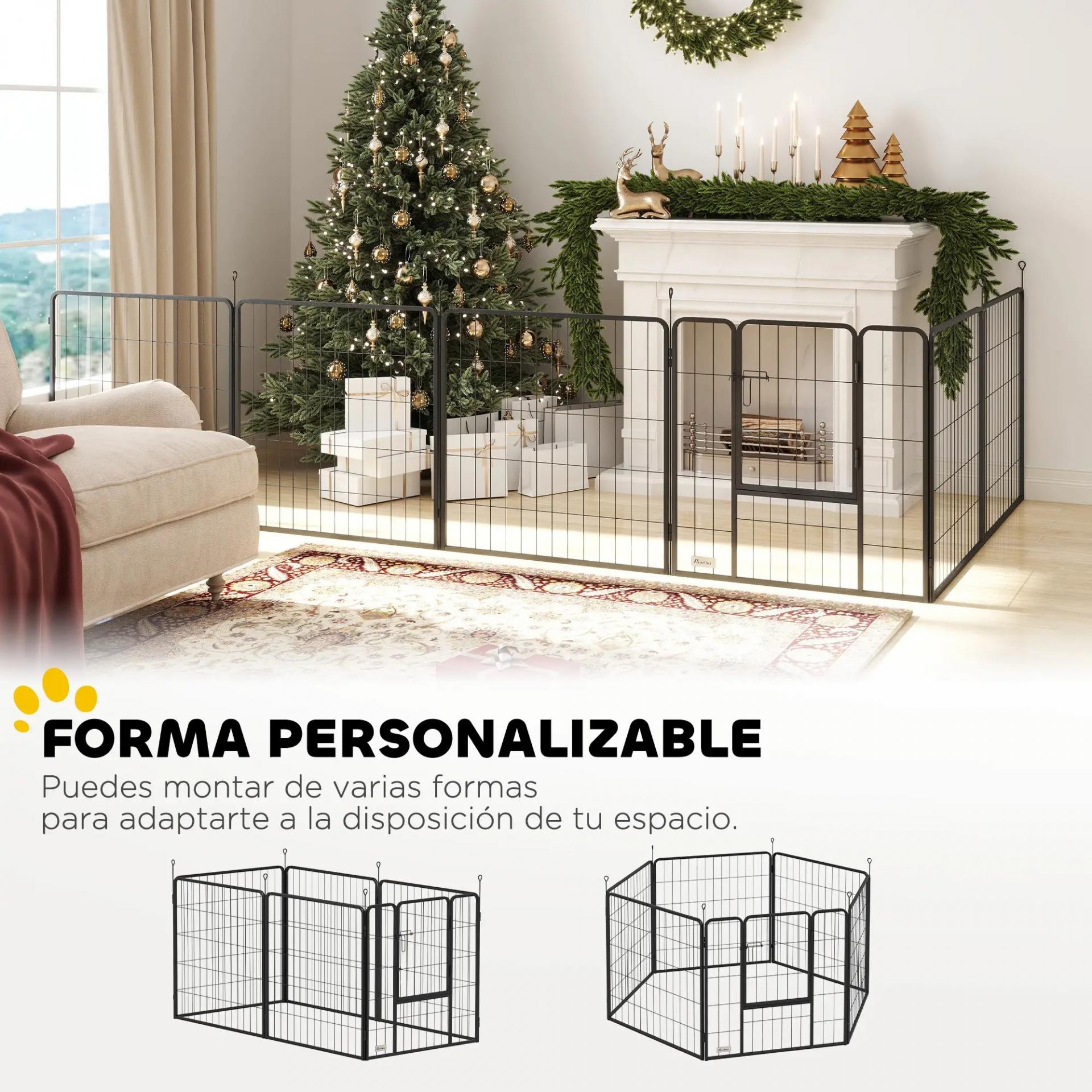 - - RESISTENTE Y ESTABLE: Fabricada en acero robusto, la valla para perros incluye 6 estacas para fijarla al suelo, aportando estabilidad adicional en exteriores. Una estructura duradera pensada para cachorros y perros medianos activos