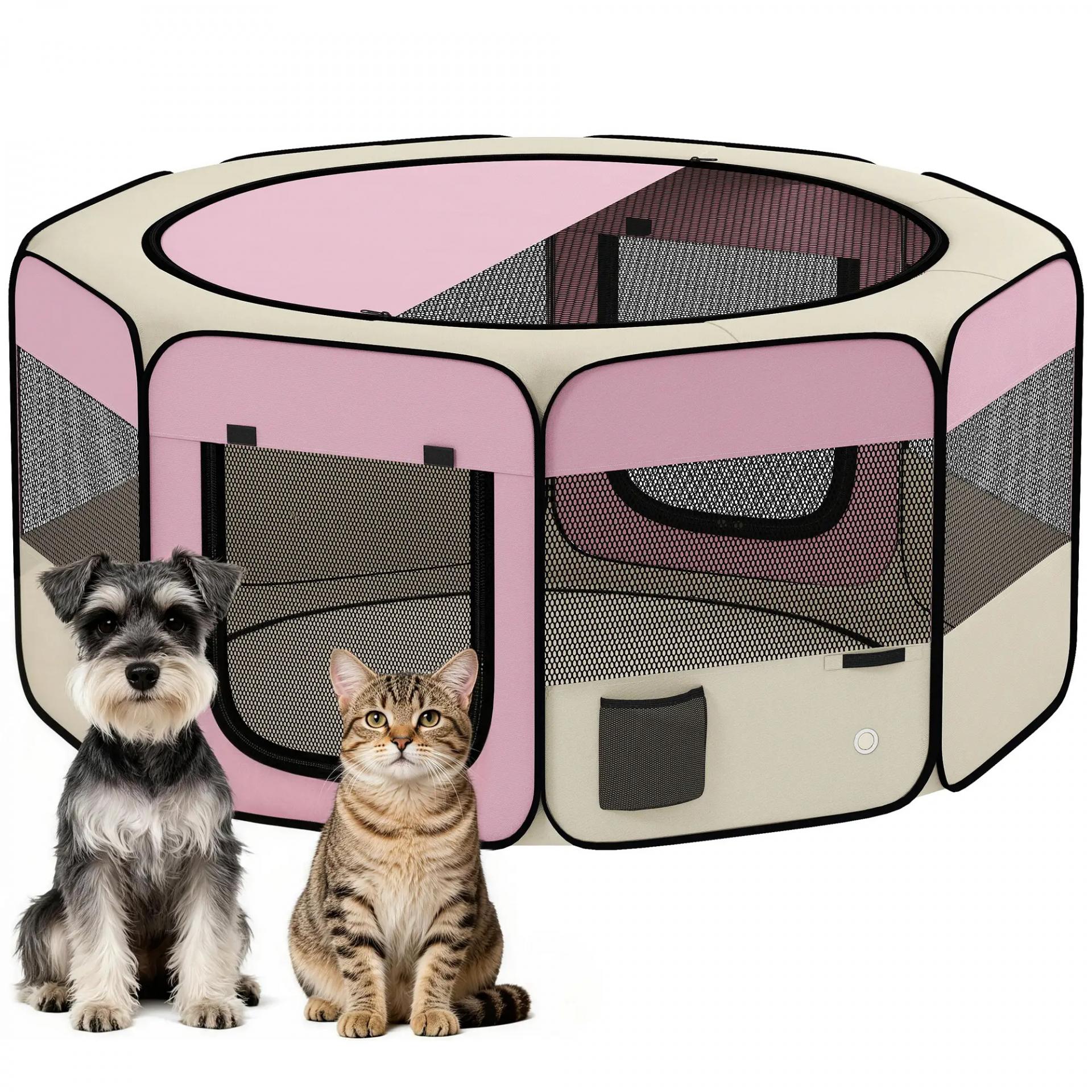 Parque Plegable para Perros y Gatos Corralito Portátil para Animales Pequeños Impermeable de Tela Oxford Ø120x58cm Rosa
