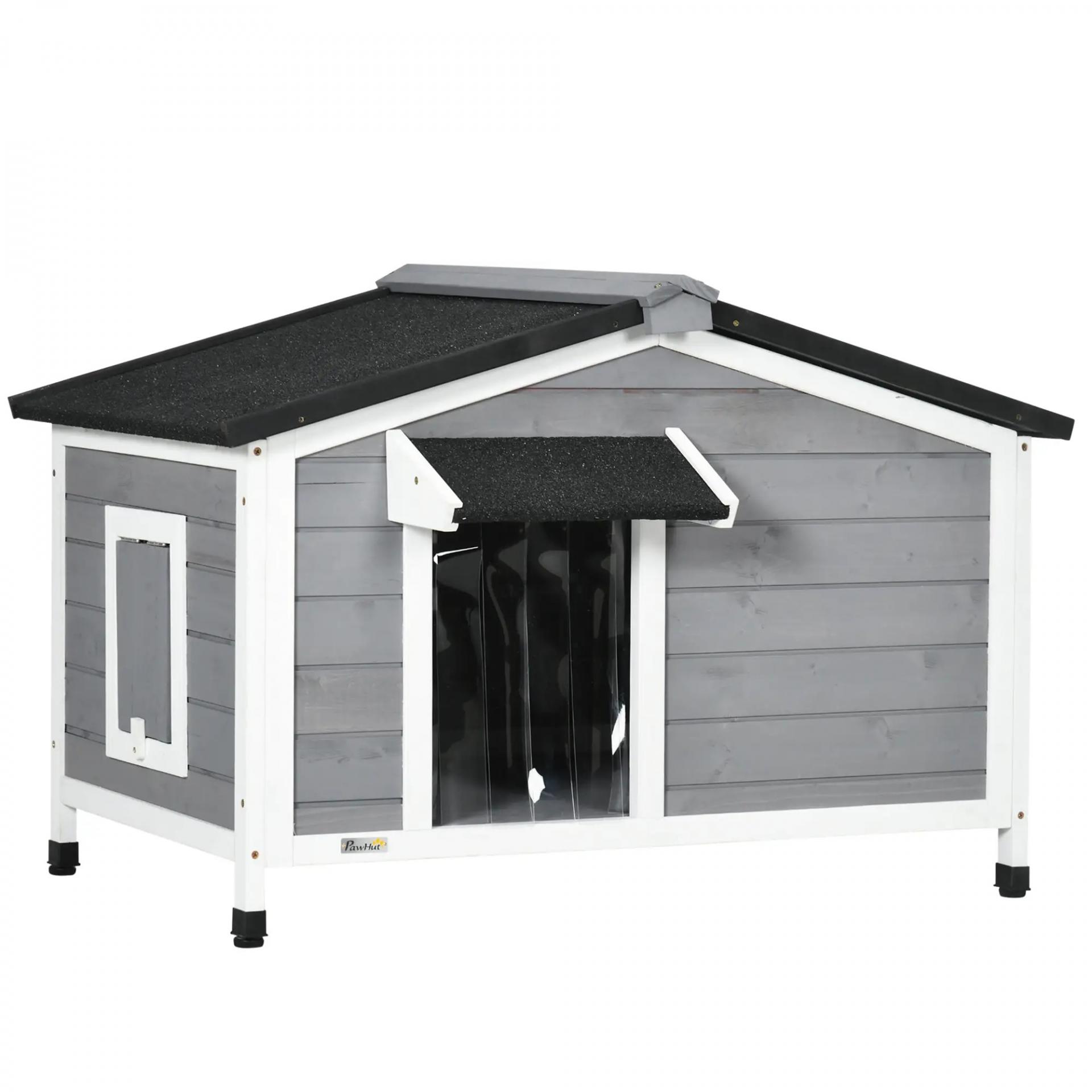 - - RESISTENTE A LA INTEMPERIE: Con revestimiento resistente al agua y techo de tela asfáltica, esta caseta para perros ofrece un espacio seguro al aire libre. La puerta con cortina evita la entrada de agua y protege del viento