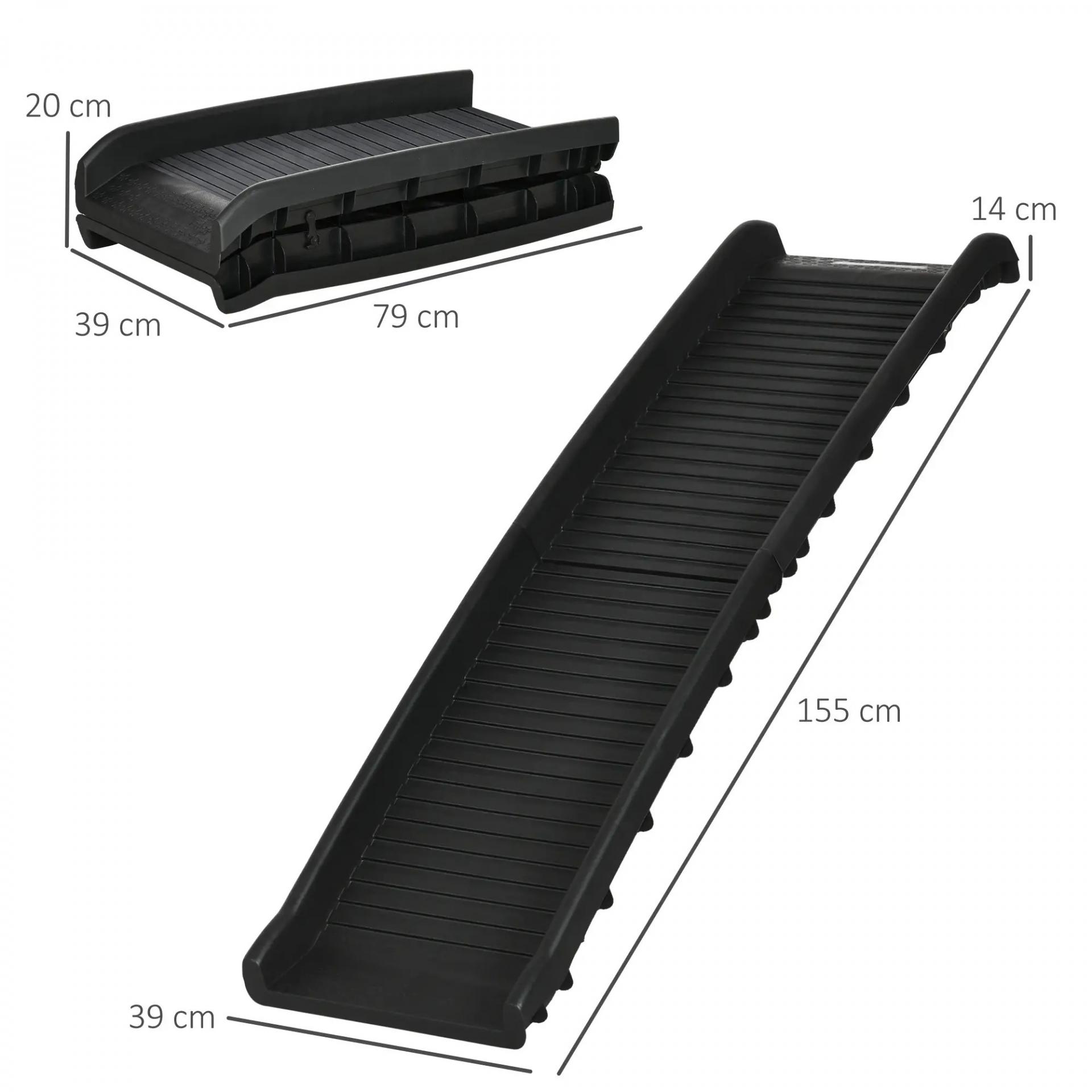 Rampa Plegable para Perros y Gatos con Almohadillas Antideslizantes para Coche Cama Sofá 155x39x14 cm Negro