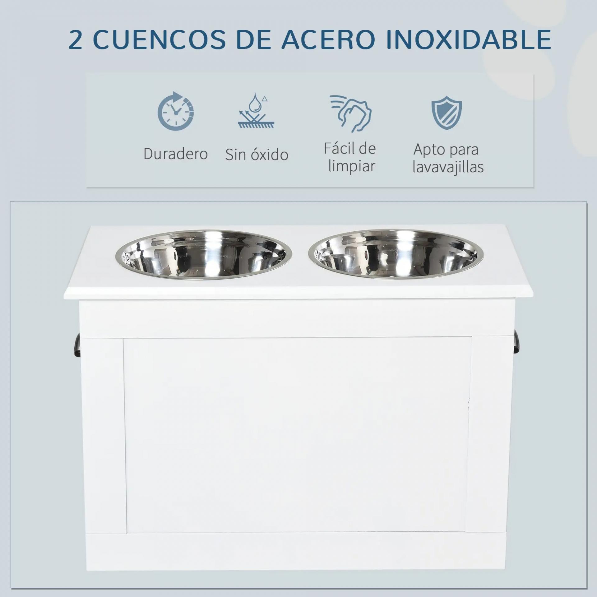 Cuencos para Perros con 2 Tazones de Acero Inoxidable y Espacio de Almacenaje Oculto 60x30x41 cm Blanco