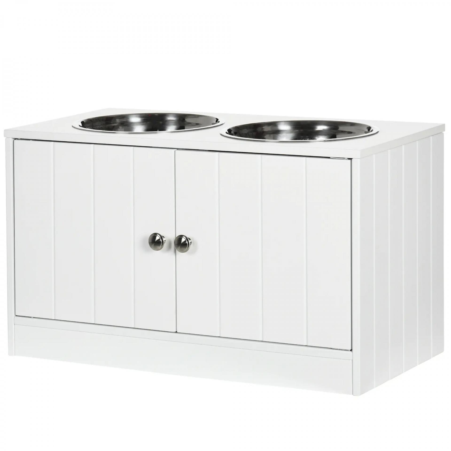 Comedero Elevado para Perros Grandes con 2 Cuencos de 2000ml y Almacenamiento Oculto 60x30x35,5 cm Blanco