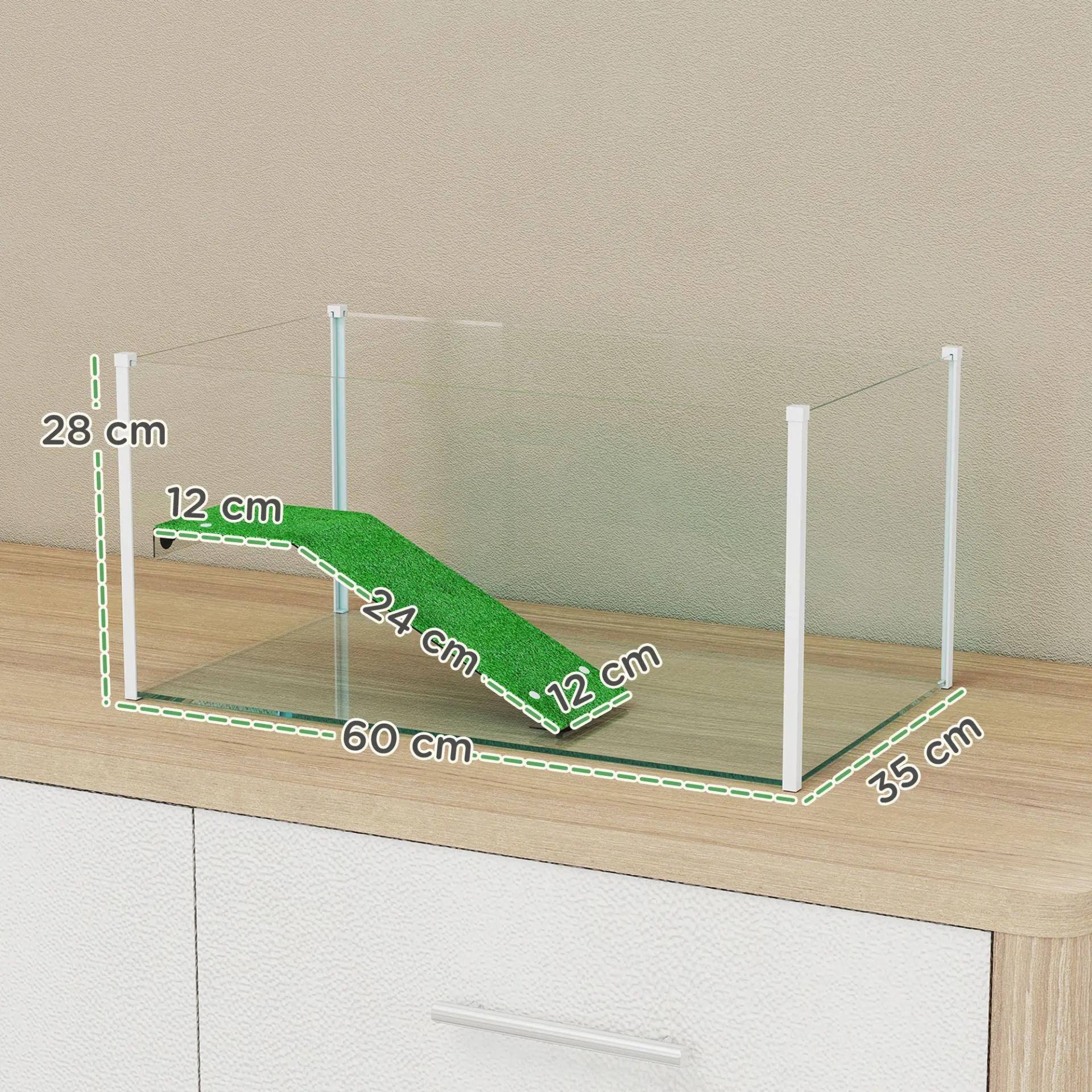 - - INFORMACIÓN DEL PRODUCTO: Medidas totales: 60x35x28 cm (ANxPxAL). Diseñado para tortugas pequeñas de menos de 6 cm, brindándoles un hábitat funcional. No requiere montaje