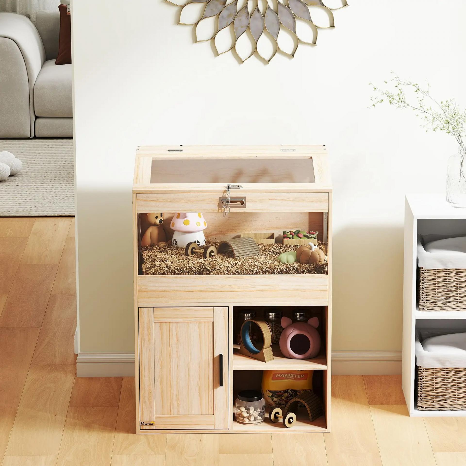 Jaula para Hámster con Espacio de Almacenaje Paneles Acrílicos Visibles Estante Ajustable 60x40x82,5 cm Natural
