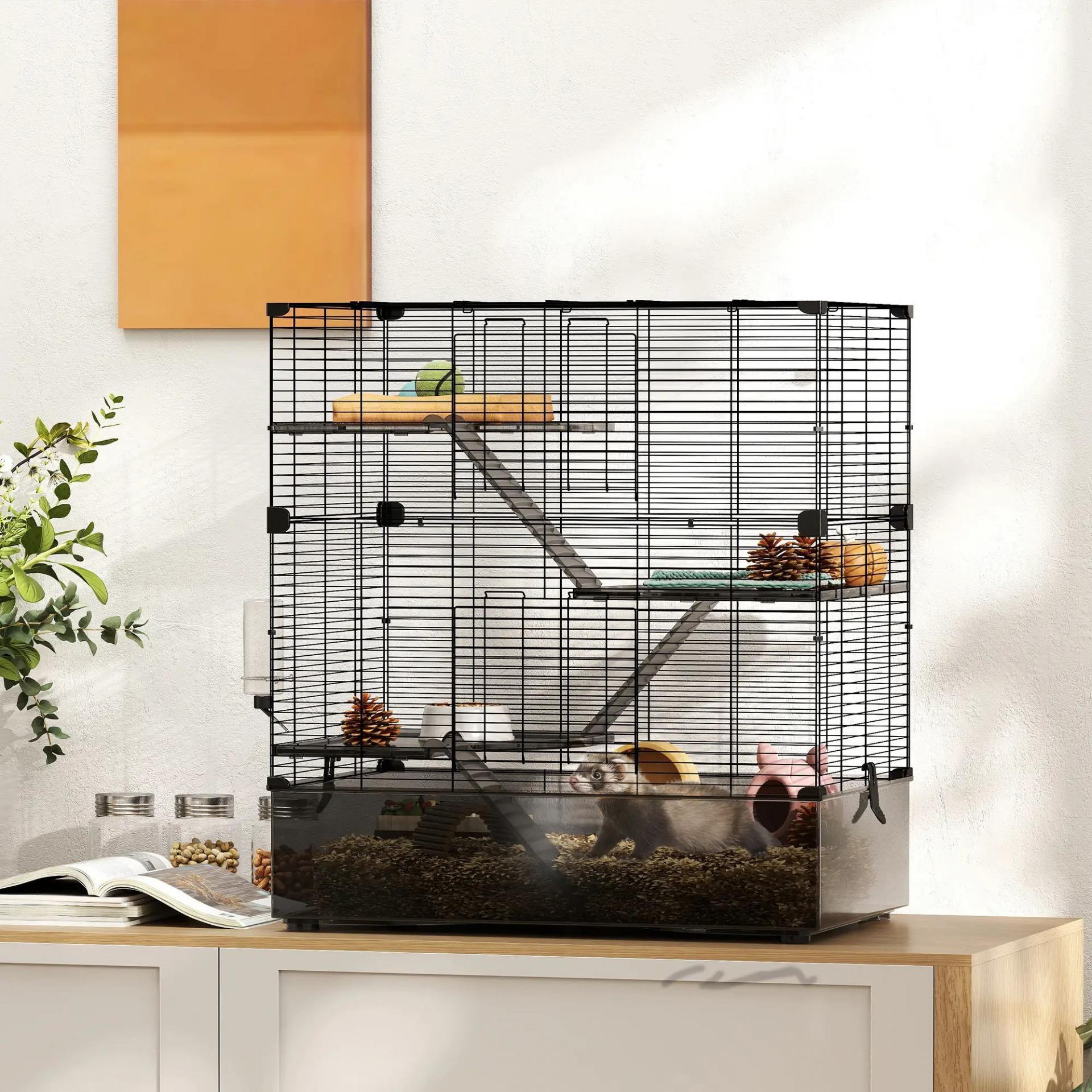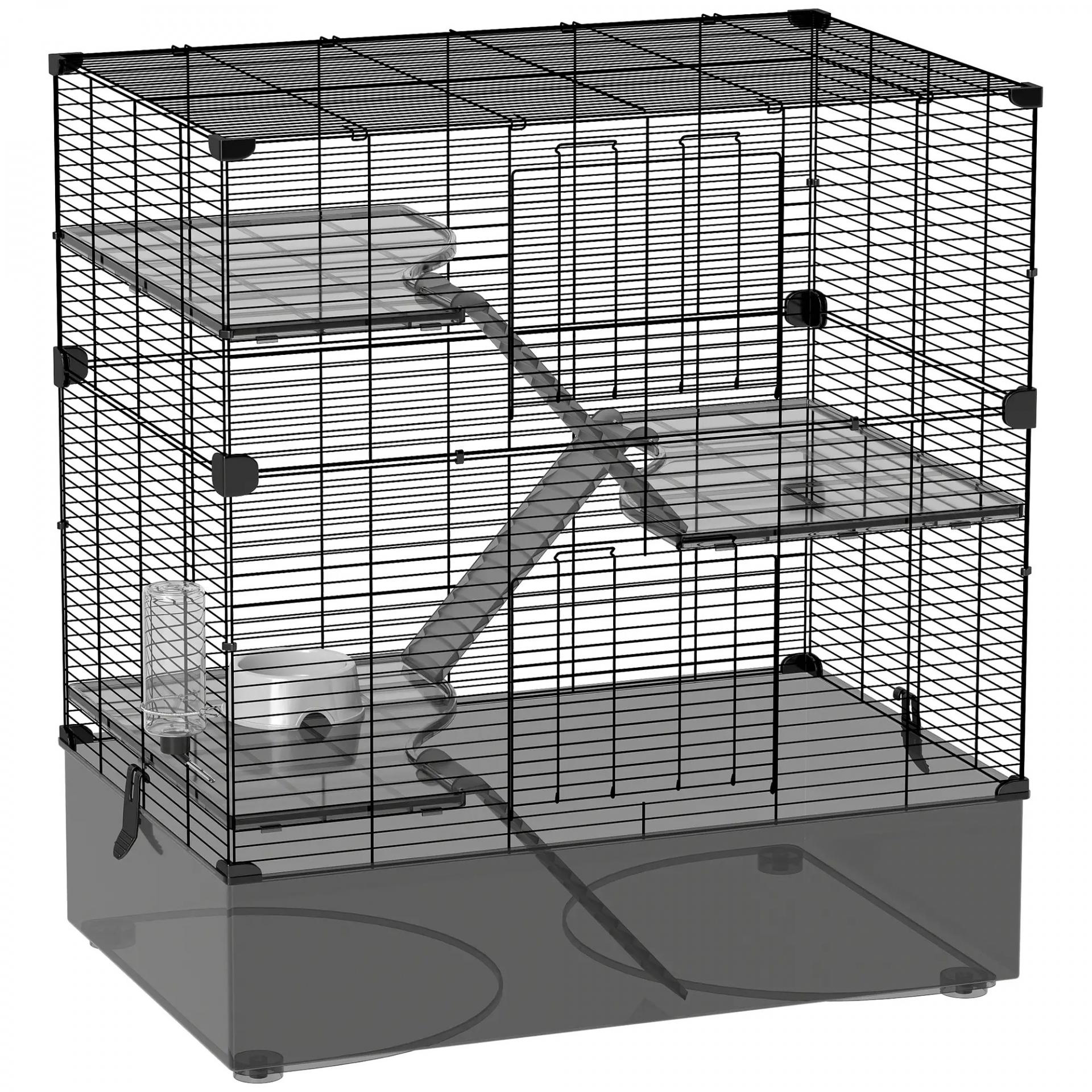 Jaula para Animales Pequeños con Múltiples Niveles Bandeja y Accesorios Incluidos 73x47x80 cm Negro