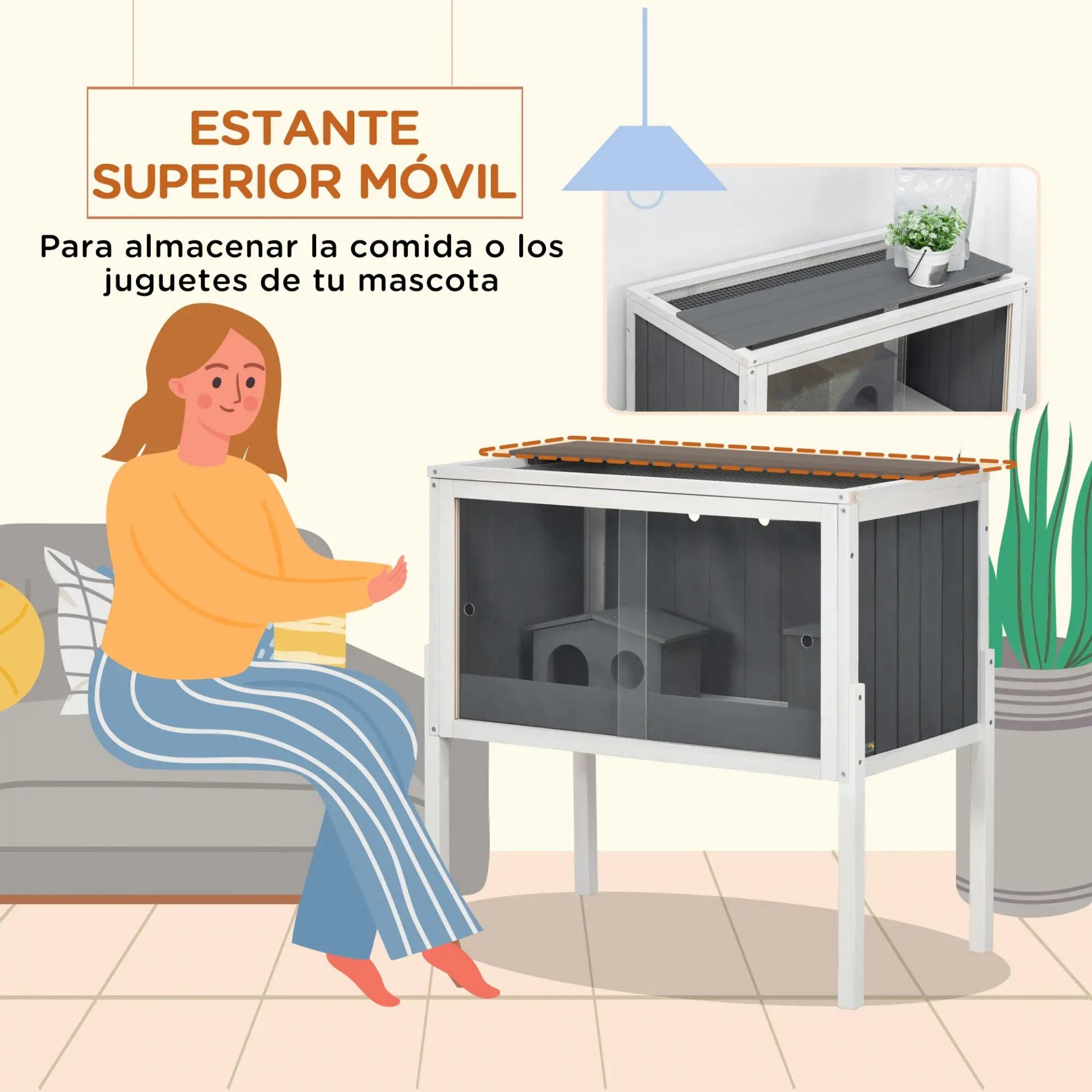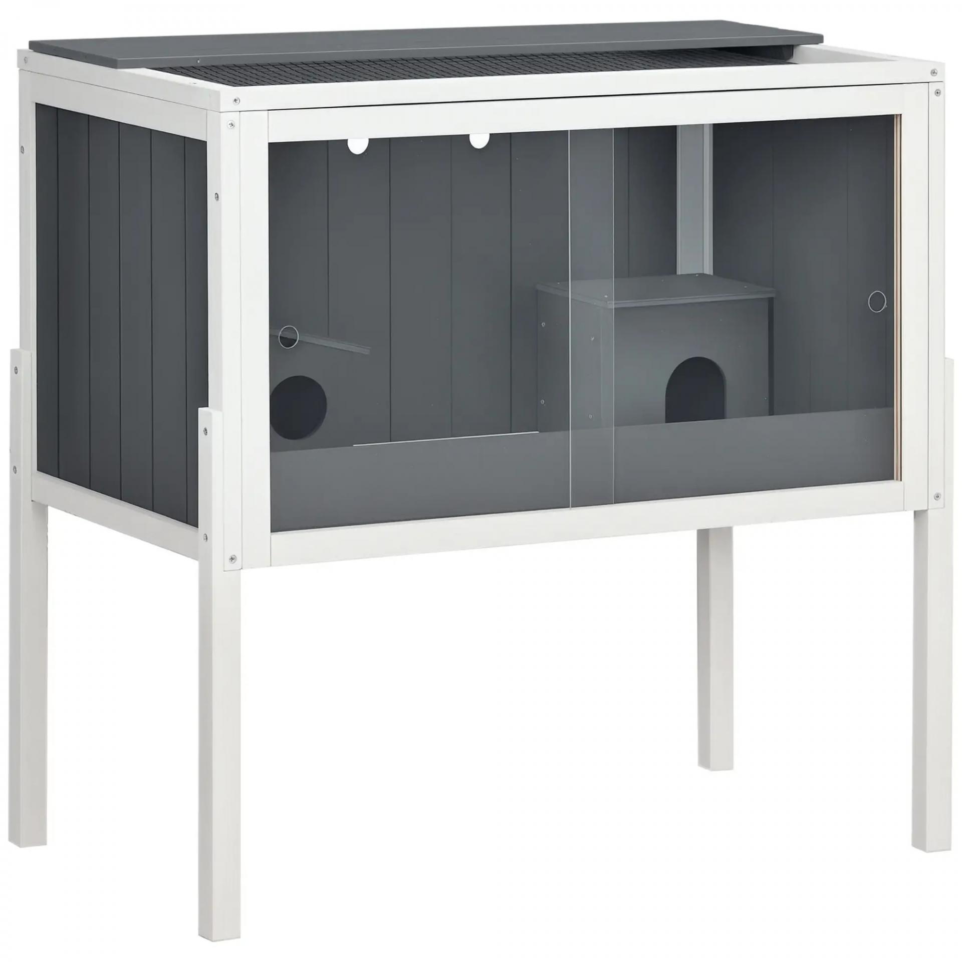 Jaula para Hámster de Madera con 2 Puertas de Acrílico 2 Casitas para Animales Pequeños 82x45x81 cm Gris Oscuro