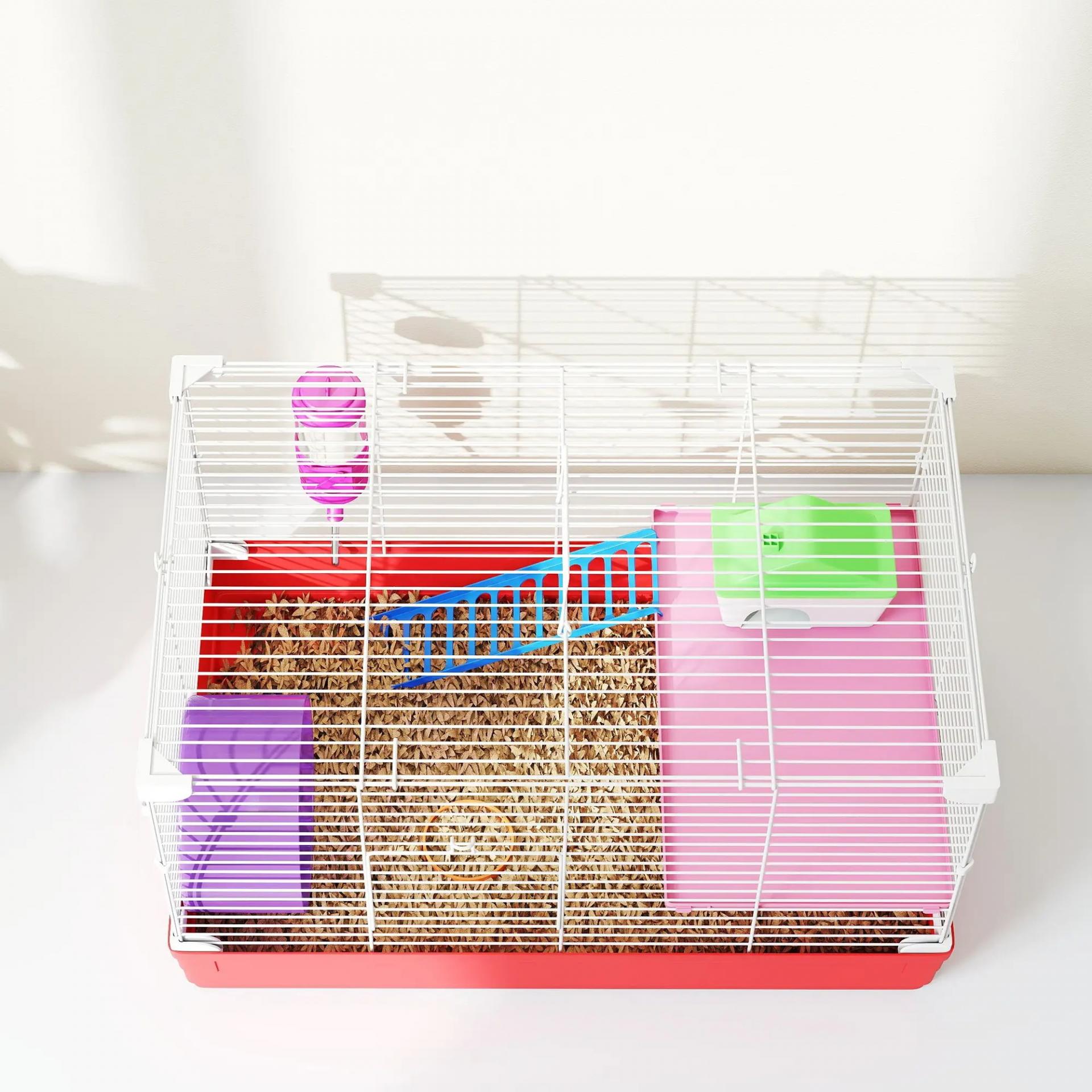 Jaula para Hámster con Plataforma con Caseta Comedero Bebedero y Rueda de Ejercicio 47x30x27 cm Blanco y Rojo