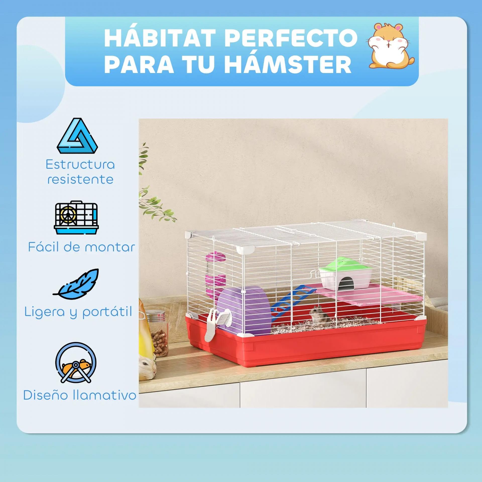 - JAULA PARA HÁMSTER CON ACCESORIOS: Esta jaula para hámster tiene 2 niveles y viene con múltiples accesorios. Ofrece un amplio espacio para descansar, jugar, explorar y ejercitarse. Adecuada para hámsteres y roedores de tamaño similar como los jerbos, etc.