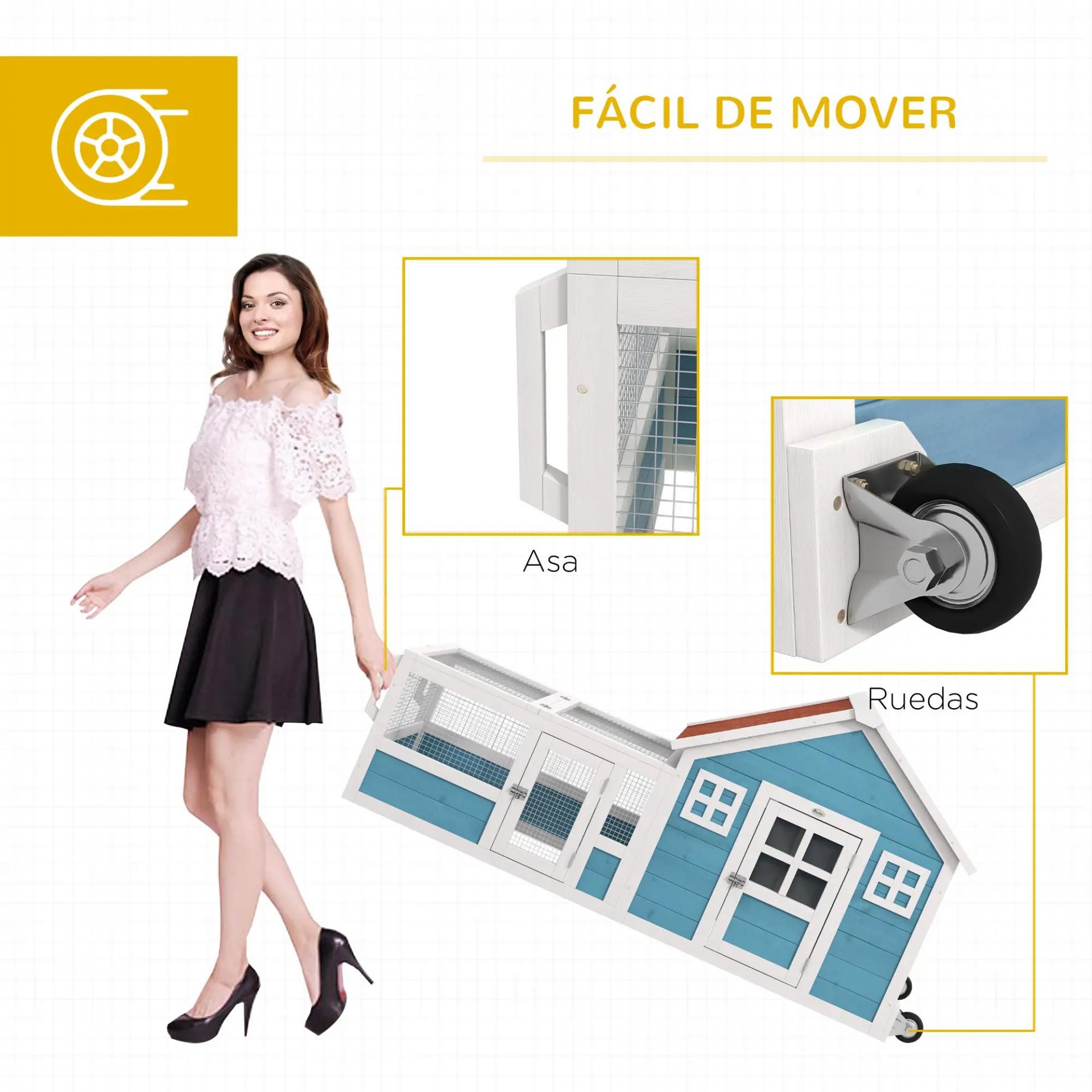 - FÁCIL DE MOVER: Esta casita para conejos tiene ruedas que facilitan su transporte. Con un diseño de fácil movimiento, será muy fácil mover el espacio de tu amigo peludo para tomar un poco de sol o reorganizar el ambiente. Además, tiene asas para facilitar el transporte