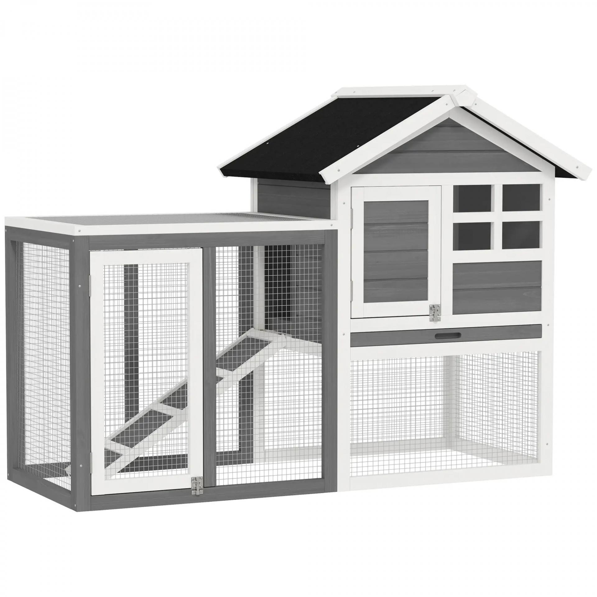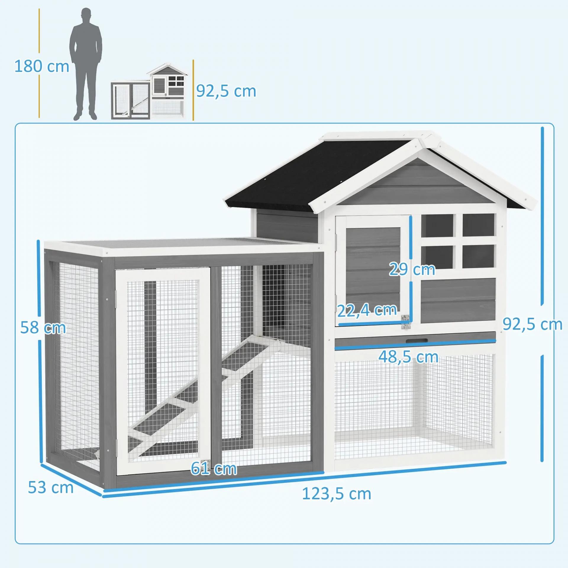 Jaula para Conejos con Zona Abierta Techo Asfáltico Bandeja Extraíble y Rampa para Exterior 123,5x62,6x92,5 cm Gris