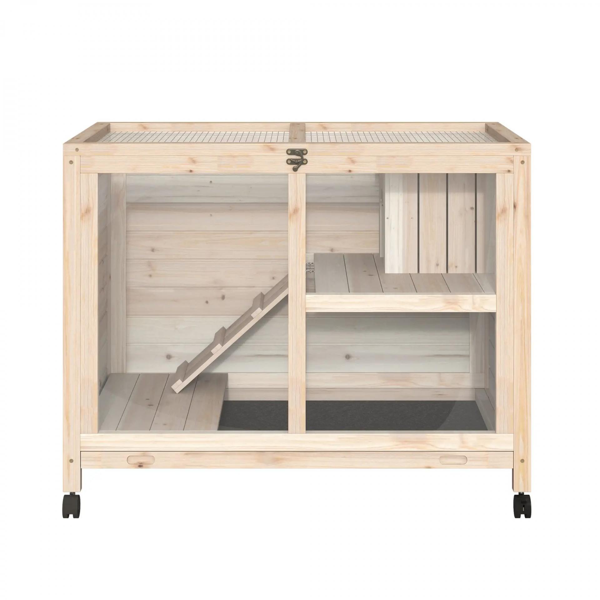 - - DISEÑO COMPACTO: Esta conejera portátil es fácil de colocar en habitaciones pequeñas y espacios reducidos, lo que te permite tener a tu amigo peludo a tu lado dondequiera que estés en casa. Con un diseño de 2 pisos unidos mediante una rampa, ofrece espacio suficiente para que tu mascota pueda moverse libremente