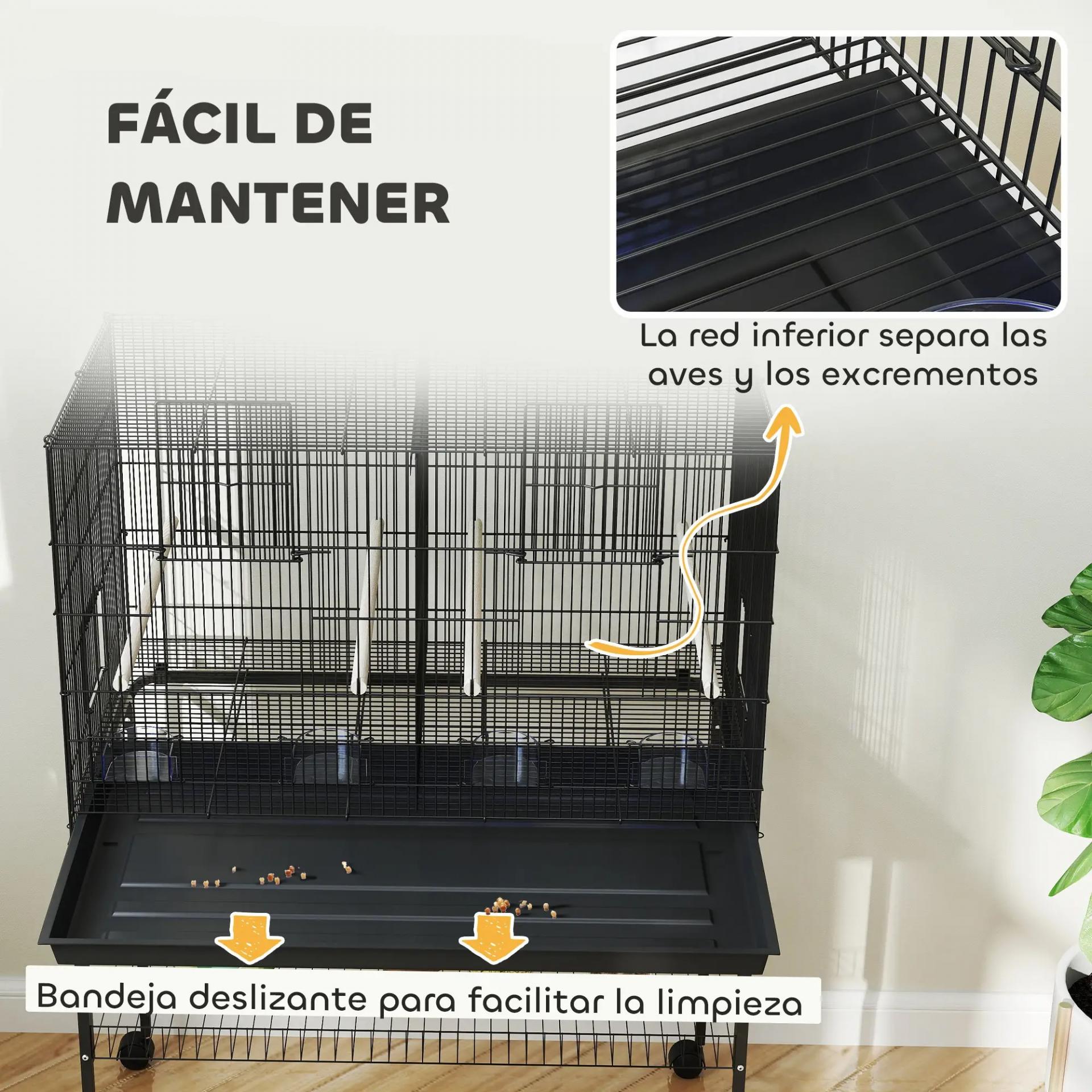 - - ZONA DE CONFORT: Hemos pensado en todo para que tus aves se sientan cómodas. Cuatro perchas de esta pajarera ofrecen el lugar ideal para descansar, mientras que los cuatro comederos facilitan las comidas