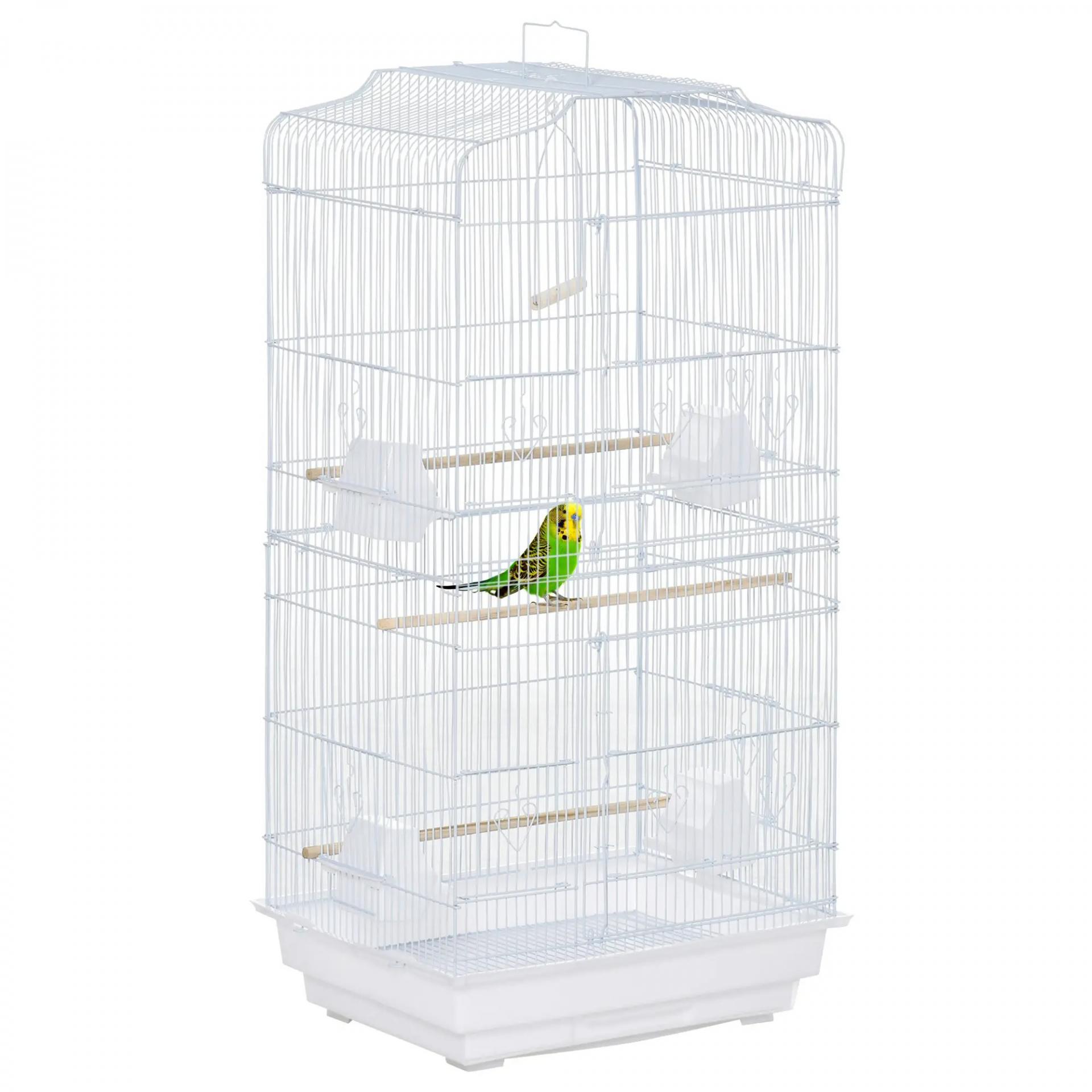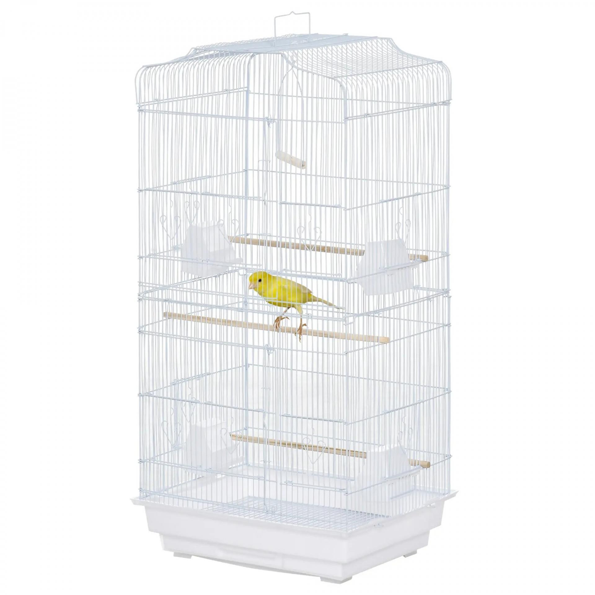 Jaula para Pájaros Pajarera de Metal con 4 Comederos 3 Perchas Columpio y Bandeja Extraíble 46,5x35,5x92 cm Blanco
