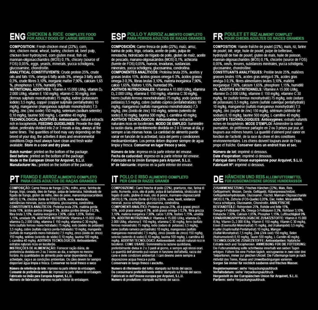 INGREDIENTES: Carne fresca de pollo (22%), maíz, arroz, harina de pollo, trigo, cebada, aceite de pollo, pulpa de remolacha, hidrolizado de hígado de pollo, gluten de maíz, aceite de pescado, manano-oligosacáridos (MOS) 0,1%, achicoria (fuente de FOS) 0,05%, huevos, levaduras, sustancias minerales, yucca schidigera, glucosamina, condroitina.