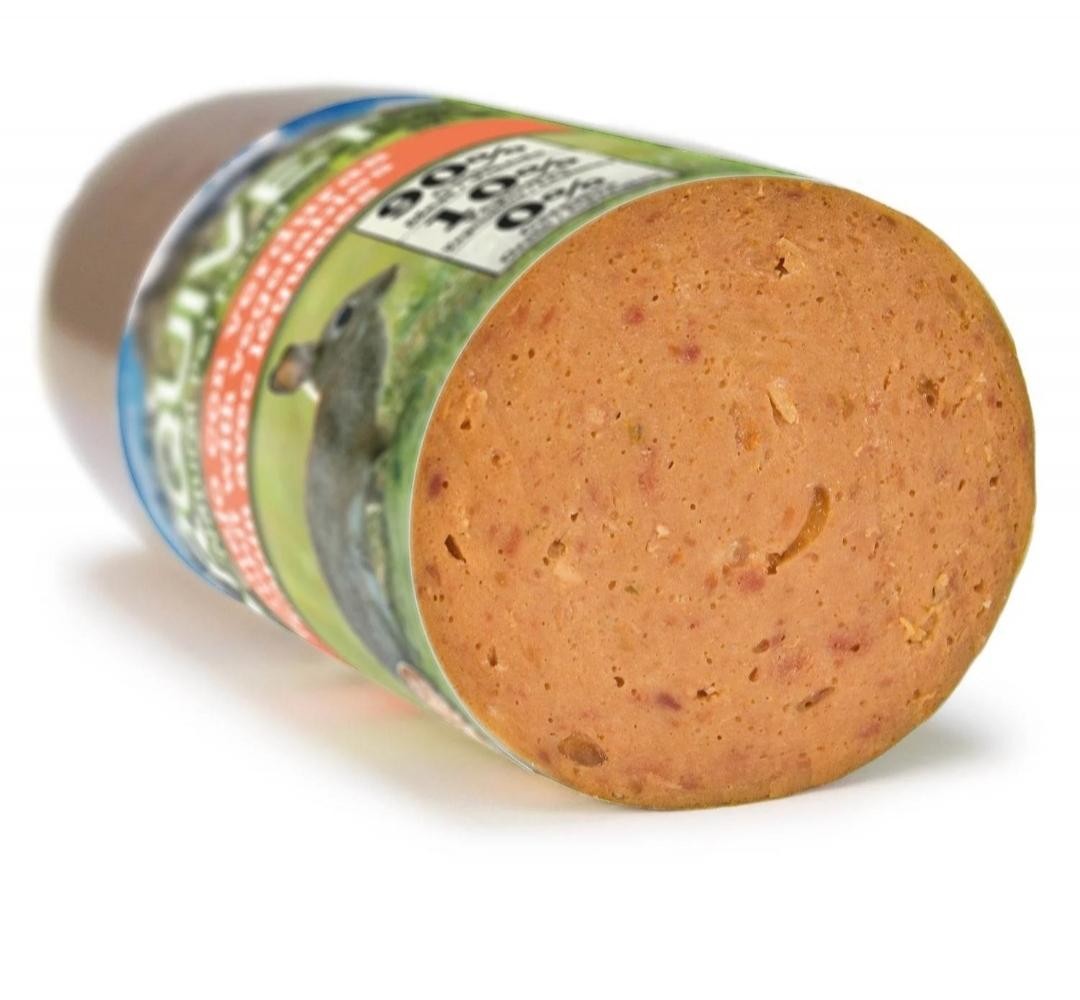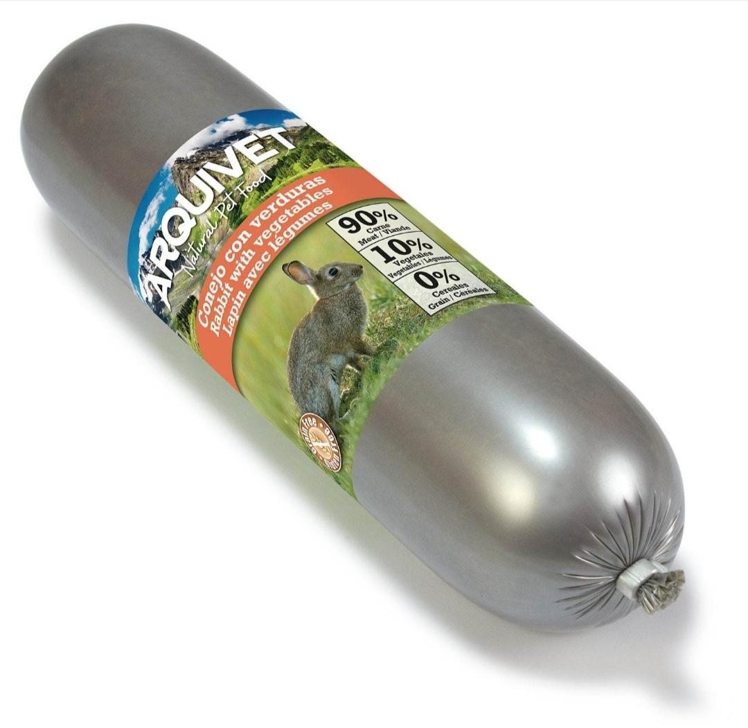 Composición: 90% Carne y derivados (11% conejo), verduras, pulpa remolacha, patatas y especias.