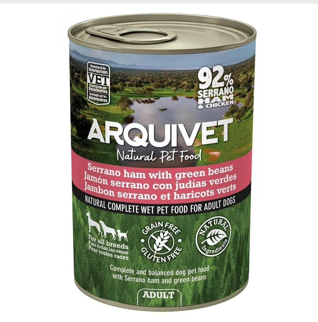 Composición: Jamón serrano 72%, pollo 20%, judías verdes, especias.