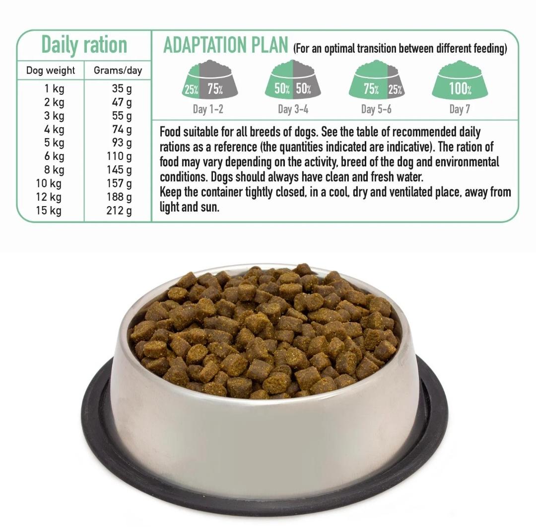 COMPOSICIÓN: 55% cerdo fresco, 20% pescado fresco, almidón parcialmente hidrolizado, tocoferoles, aceites esenciales (orégano, tomillo, clavo, romero y canela ceylan), pulpa remolacha molida, brócoli, levadura cerveza, achicoria, plátano, pera, manzana, cúrcuma, romero, tomillo.