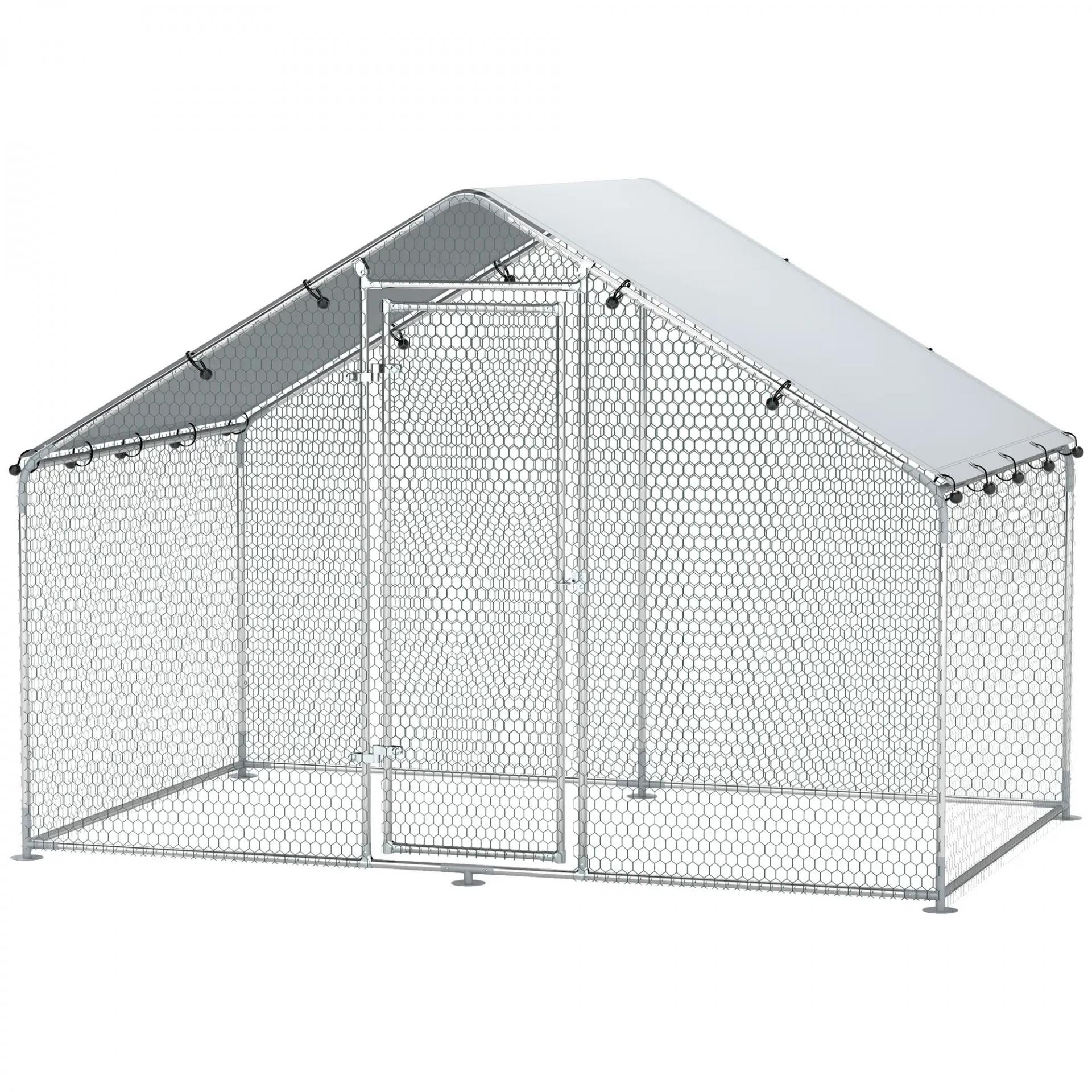 Corral para Gallinas Gallinero Metálico Grande de 3x1,7x1,9 m con Cubierta Impermeable y Anti-UV Plata