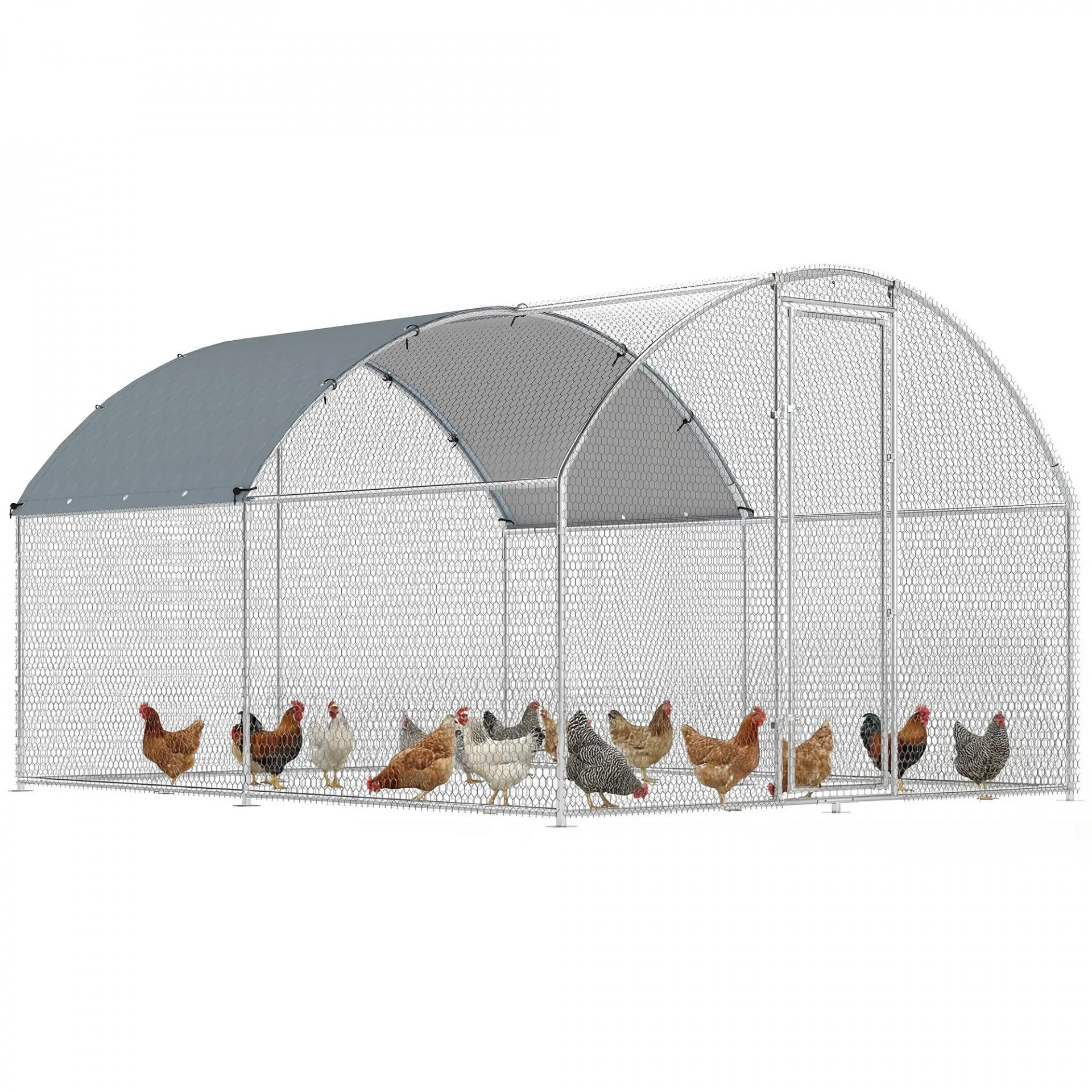 Gallinero para Exterior 2,8x3,4x1,9 m Cubierta de Tela Oxford Anti-UV Impermeable Pestillos para 10-16 Gallinas Plata