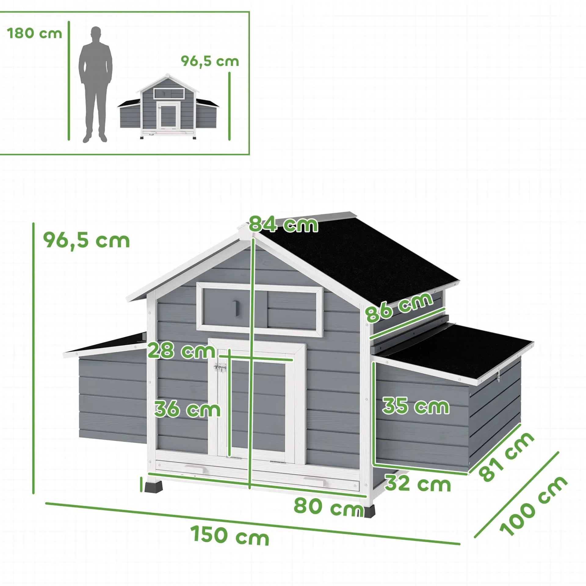 - - ACCESO PRÁCTICO: Una puerta frontal amplia proporciona un fácil acceso para las gallinas, mientras que permite a los propietarios cuidar y revisar su avicultura cómodamente. Además, la ventana garantiza una ventilación óptima dentro del gallinero