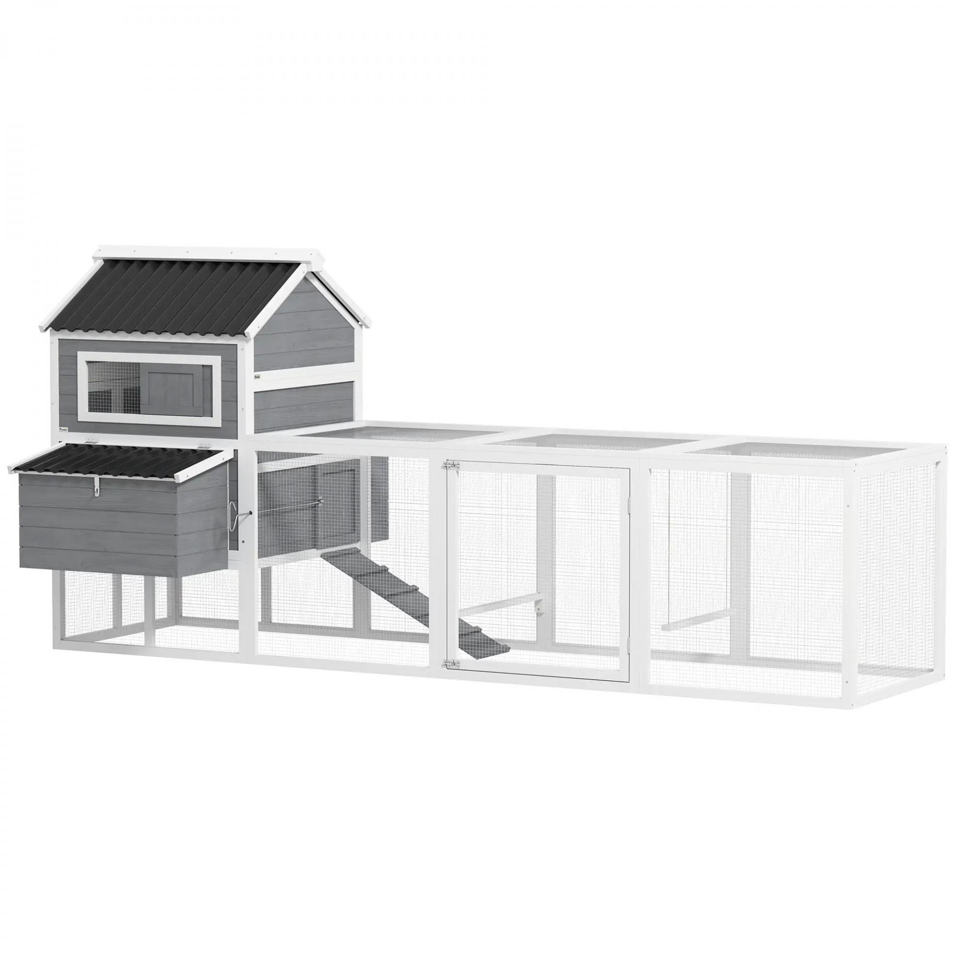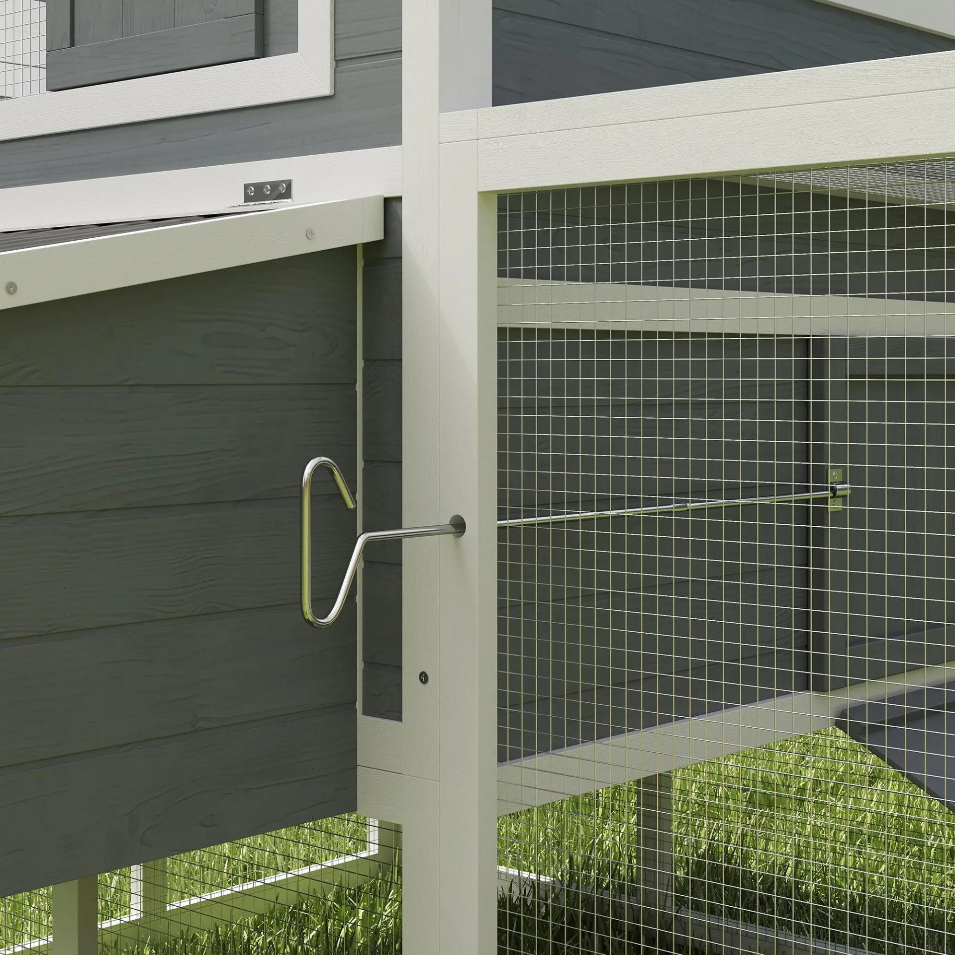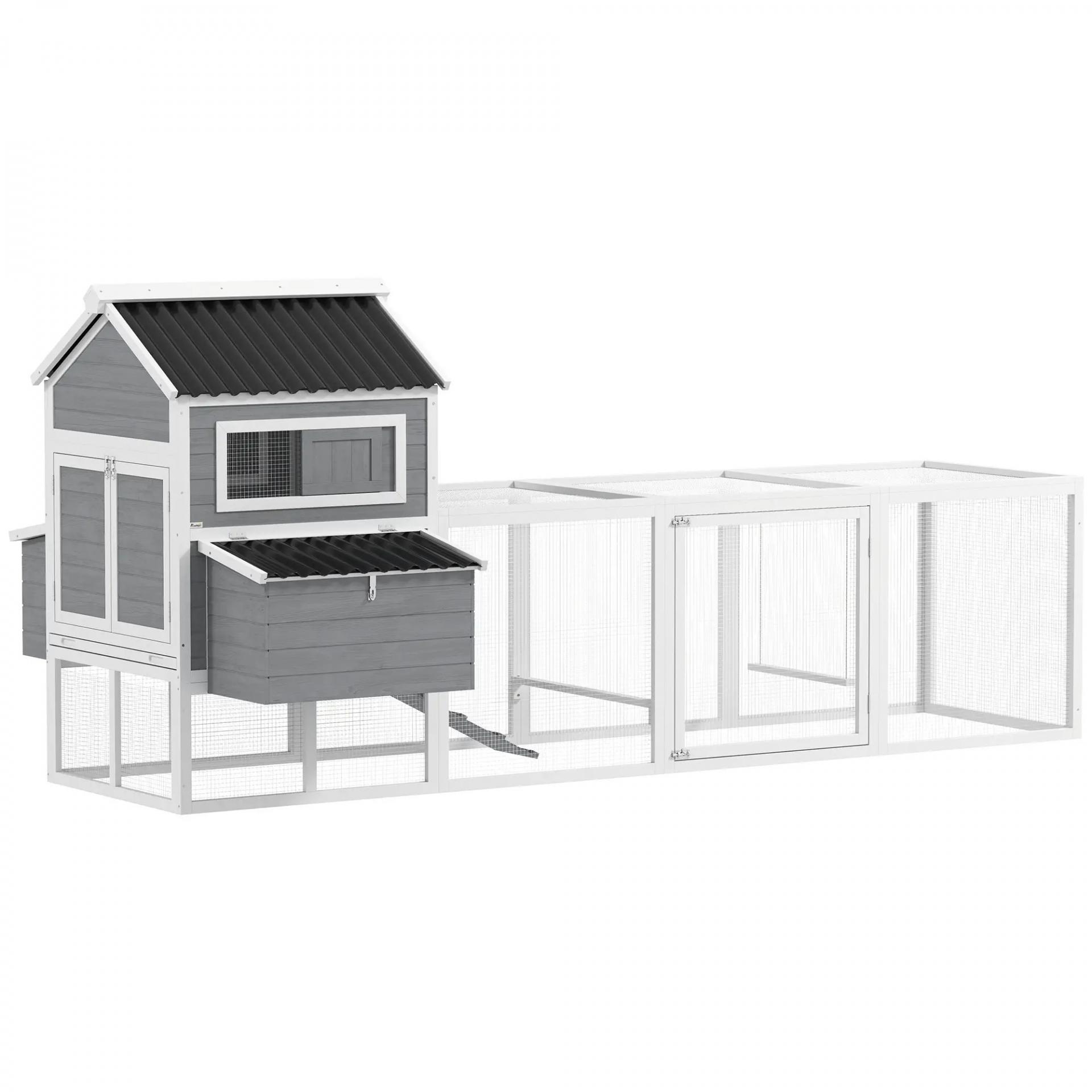 Gallinero de Madera con Perchas Columpio Nidos y Bandeja Extraíble 315,5x150,5x140,5 cm Gris