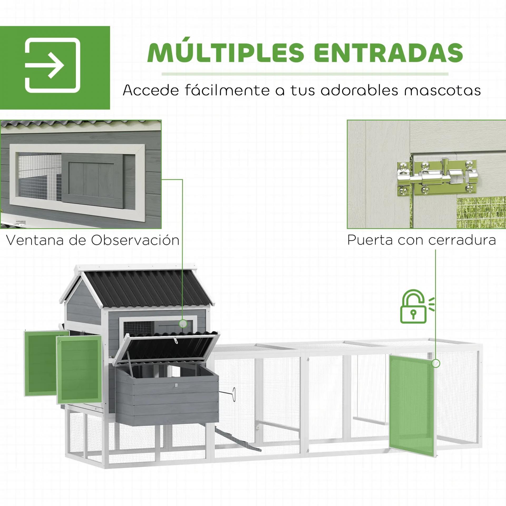 - - HÁBITAT CON ACTIVIDADES: Este gallinero incluye tres perchas y un columpio, que fomentan los comportamientos naturales de tus gallinas, manteniéndolas activas y saludables. Un entorno enriquecido para su bienestar