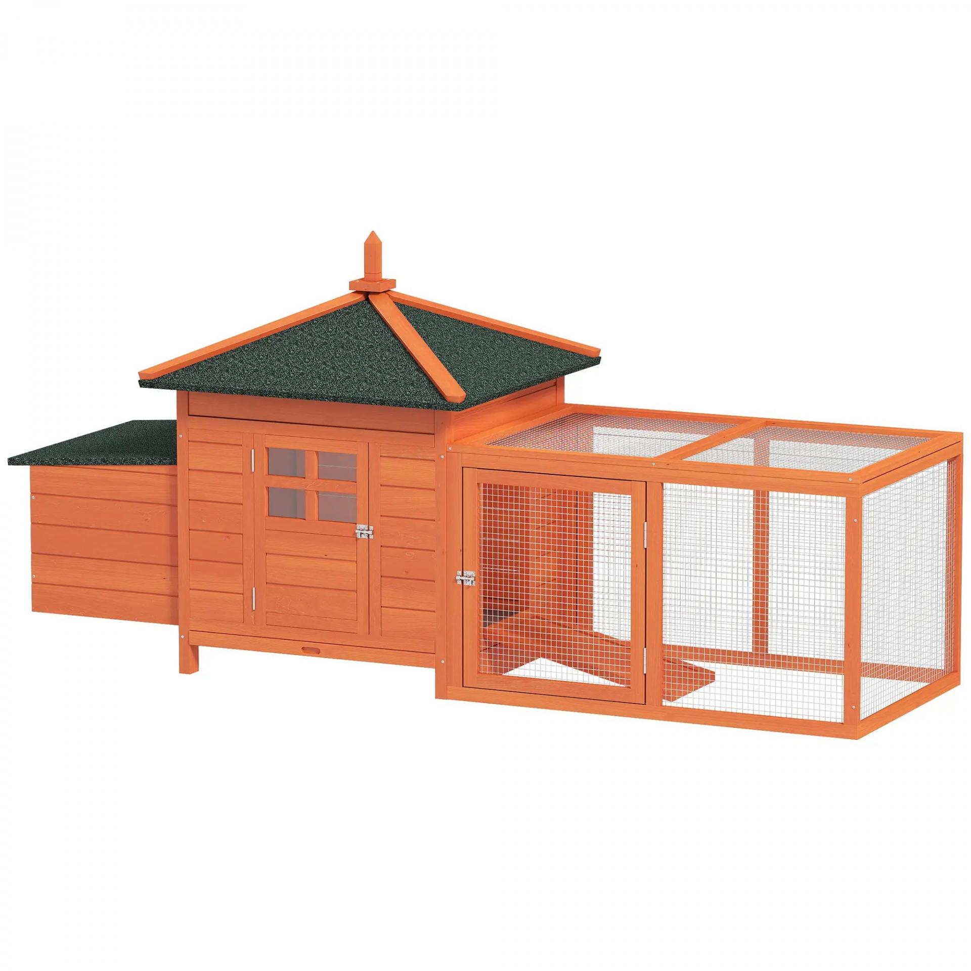 Gallinero de Madera Exterior Jaula para Gallinas con Nidos Corral Bandeja Extraíble Tapa Abatible 196x76x97 cm Naranja