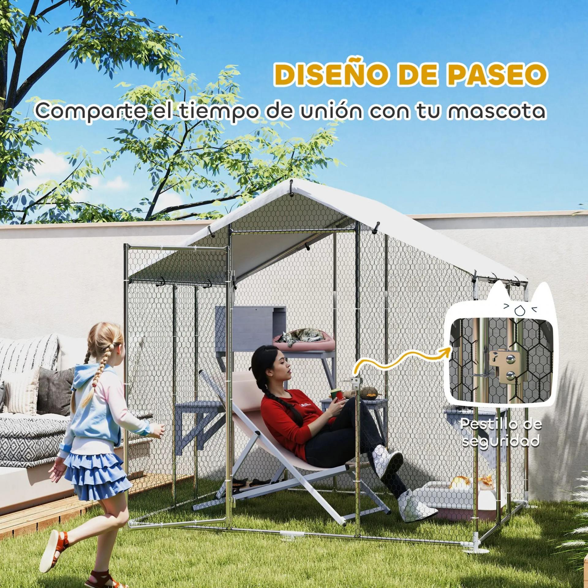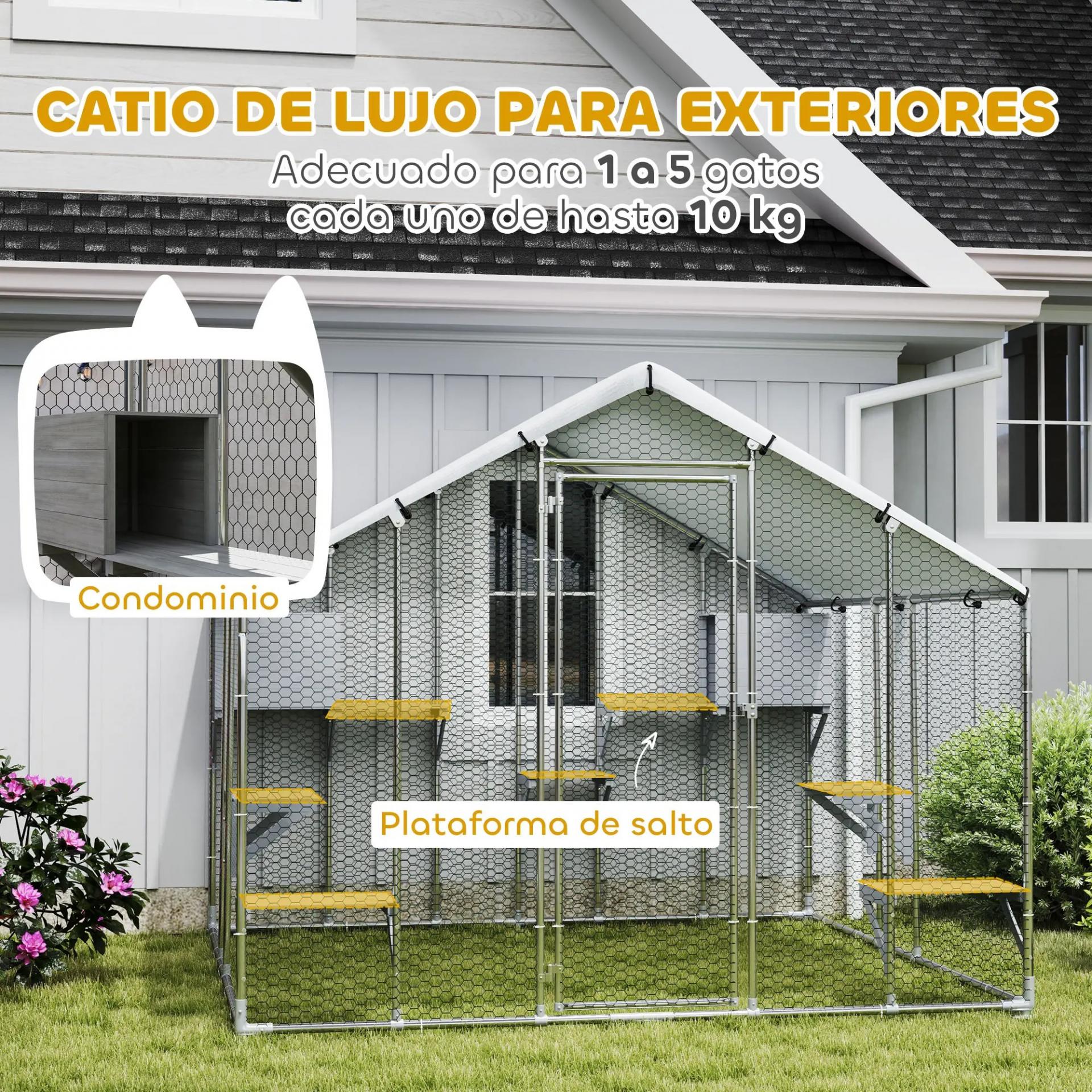 - ESPACIO AMPLIO PARA TI Y TUS MASCOTAS: Este recinto exterior para gatos ofrece 4,55 m² de espacio, ideal para hasta cinco gatos activos. Disfruta del aire libre junto a ellos mientras se mueven, juegan y descansan con total libertad