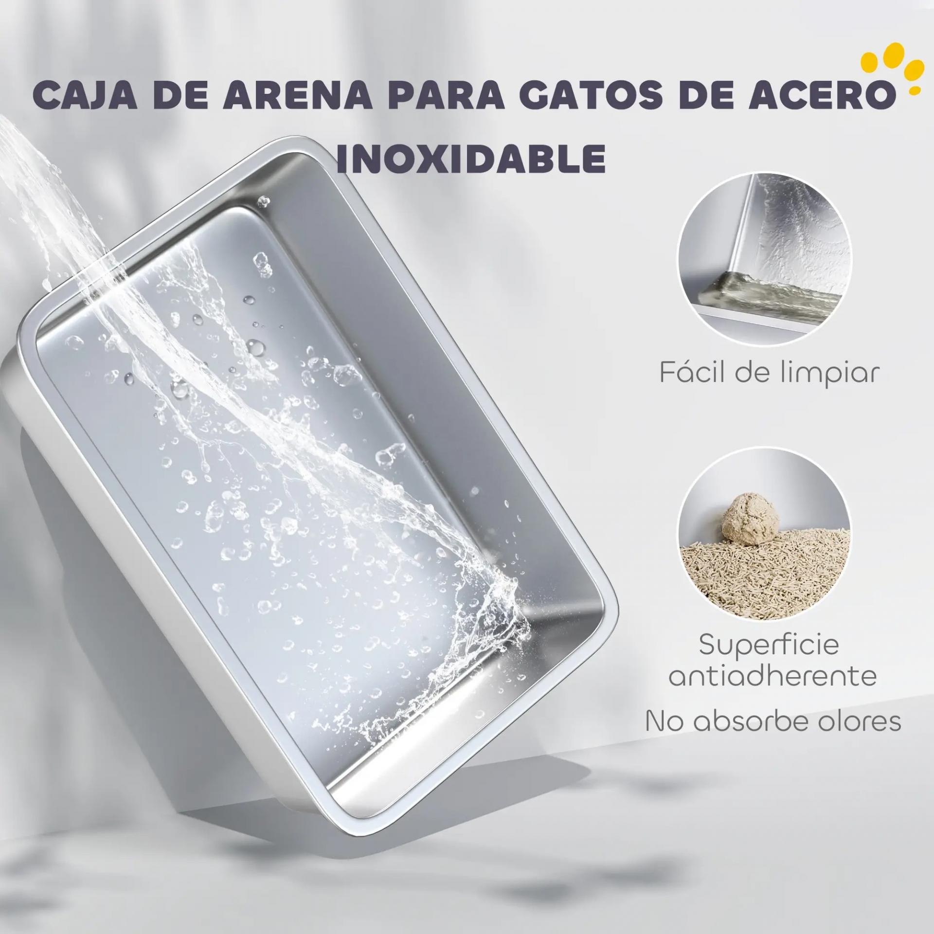 - DISEÑO HIGIÉNICO EN ACERO INOXIDABLE, MÁS LIMPIO Y DURADERO: Este arenero cuenta con una base de acero inoxidable que evita la acumulación de bacterias, bloquea olores y facilita una limpieza más rápida y eficaz en comparación con bandejas de plástico
