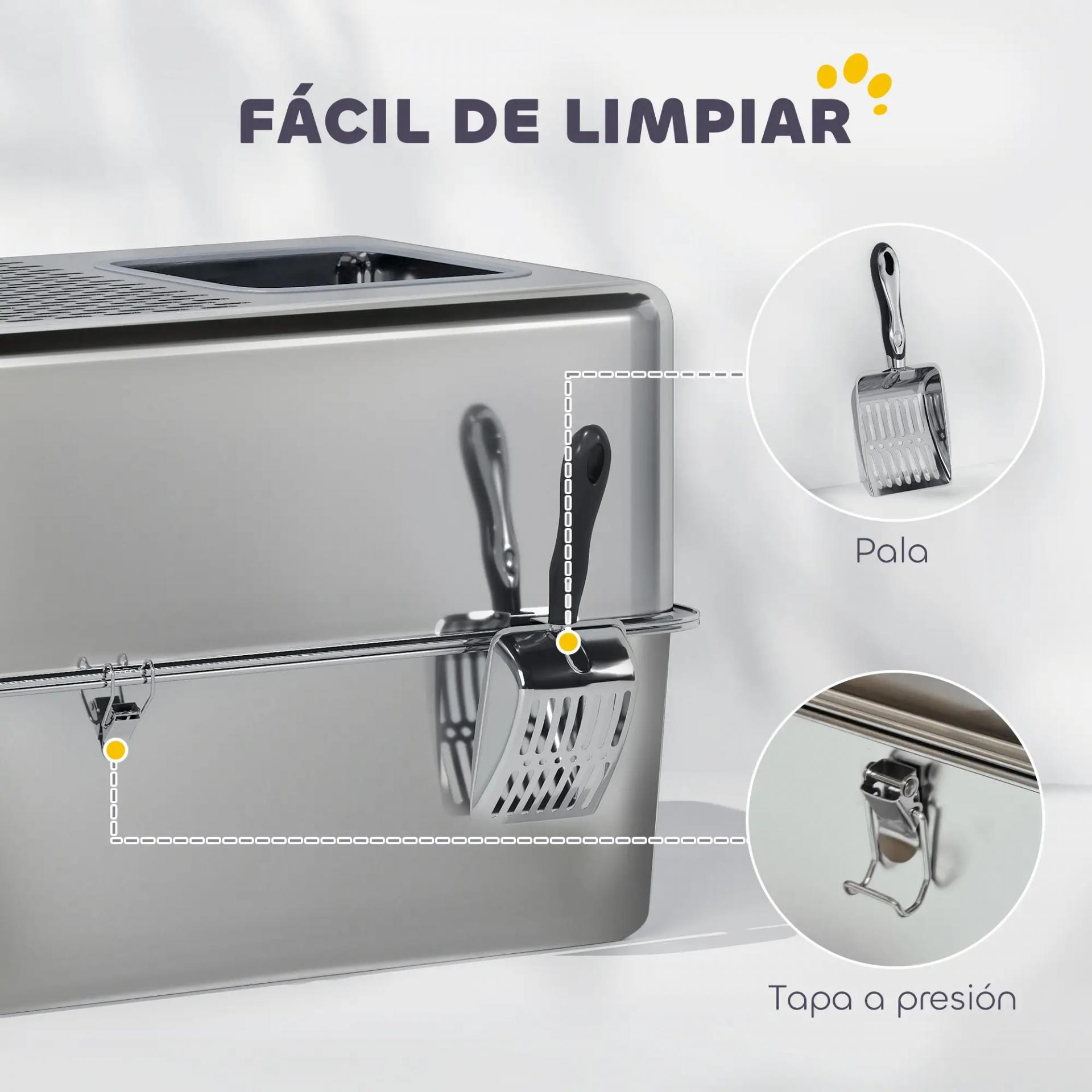 - - RESISTENTE Y DURADERA: Fabricada en acero inoxidable, esta caja de arena resiste arañazos, manchas y olores. Una alternativa higiénica, robusta y fácil de limpiar frente a las bandejas plásticas convencionales