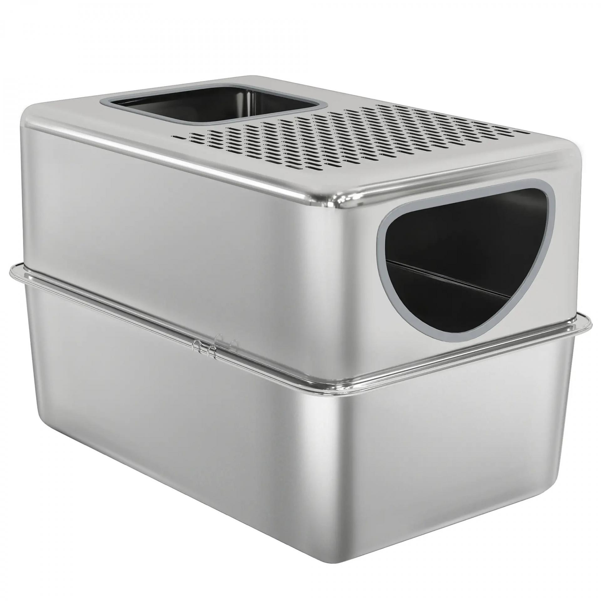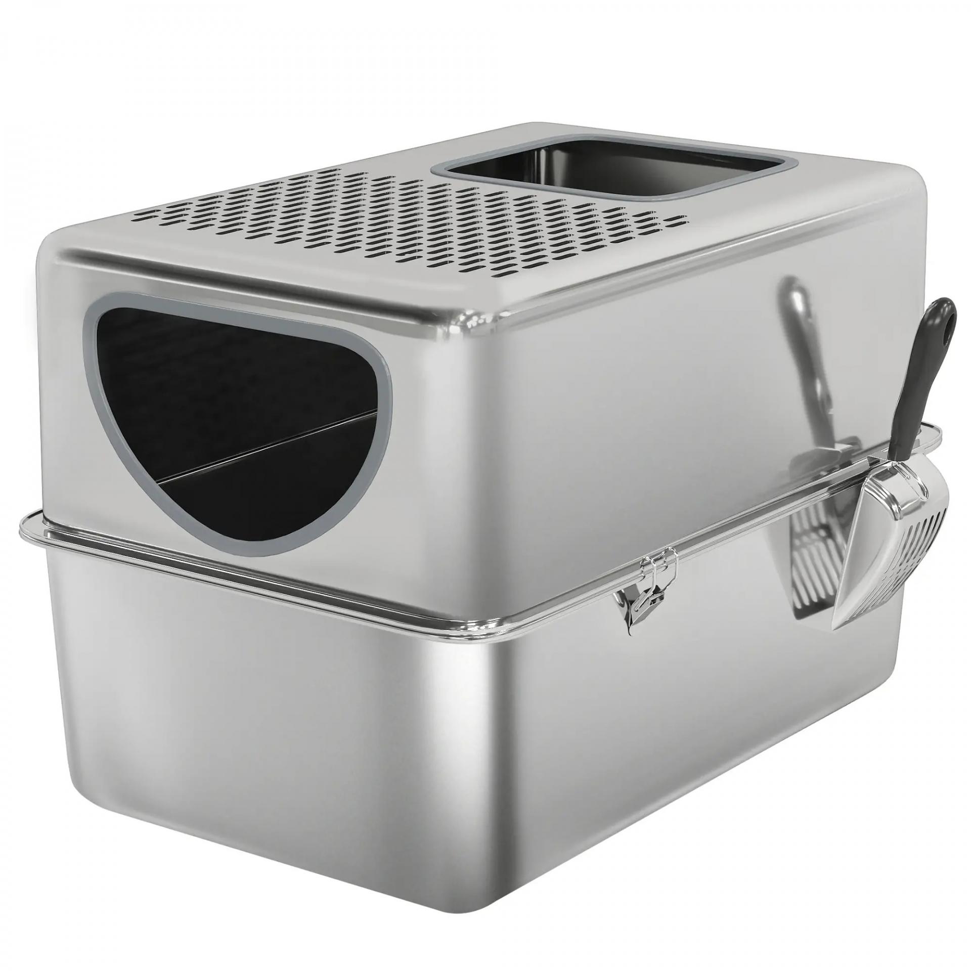 Arenero para Gatos de Acero Inoxidable XL Arenero con Pala Aberturas Dobles Fácil de limpiar Plata