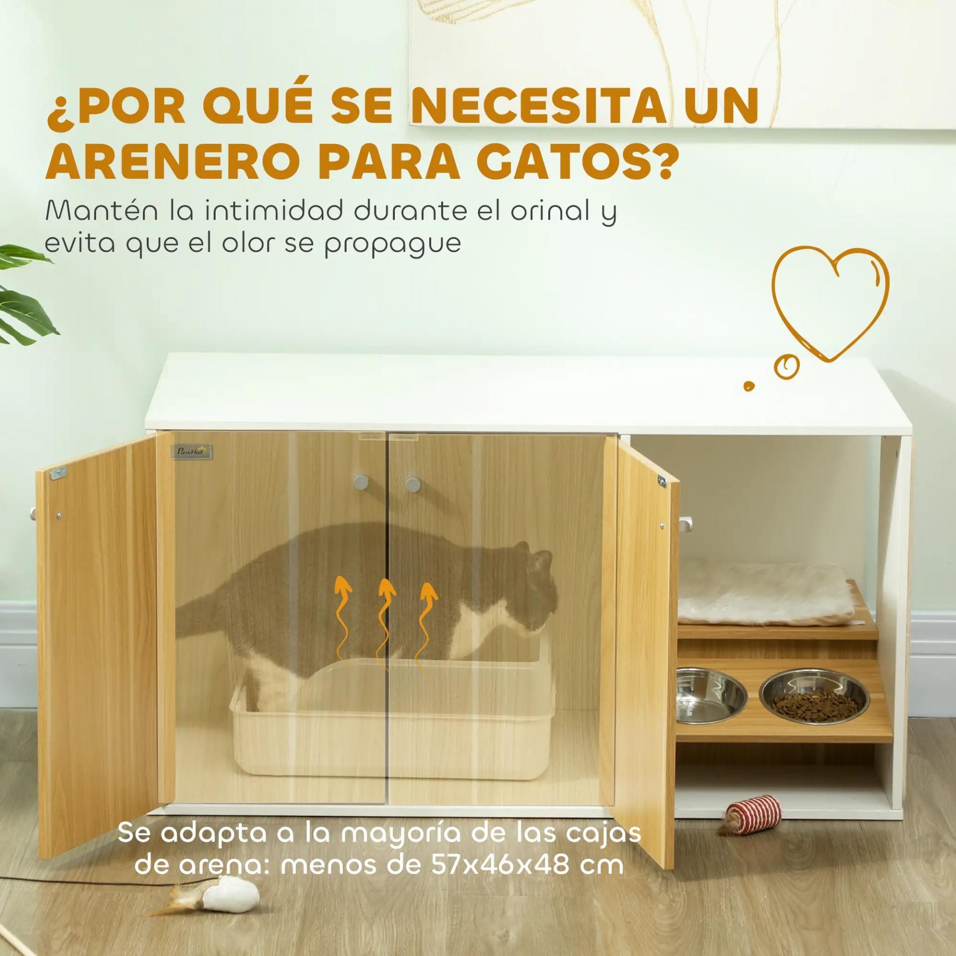 - - INTERIOR ESPACIOSO: Su amplio armario es compatible con la mayoría de las cajas de arena hasta 57x46x48 cm (LxANxAL) y ofrece amplio espacio para gatos de hasta 5 kg, garantizando su confort en momentos íntimos