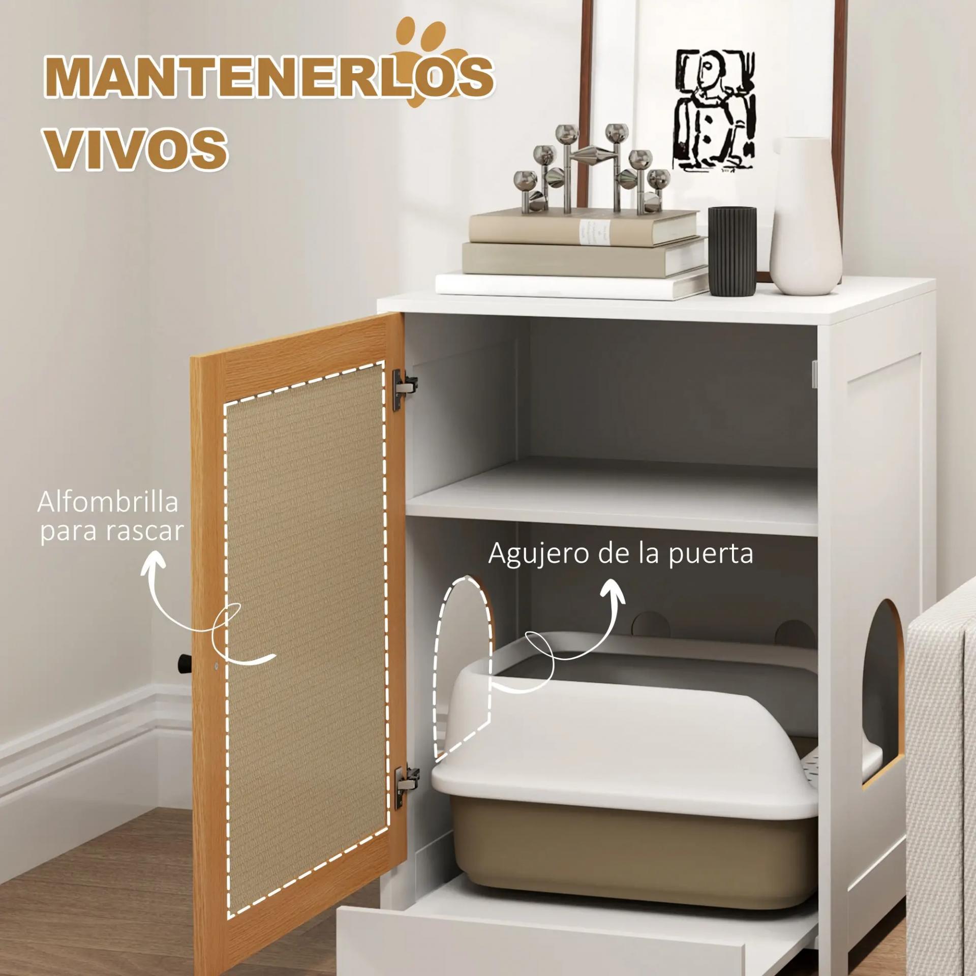 - - FÁCIL DE LIMPIAR: Este mueble arenero para gatos es muy fácil de limpiar gracias a la bandeja con ruedas, que permite la rápida extracción de la arena, facilitando el mantenimiento del espacio