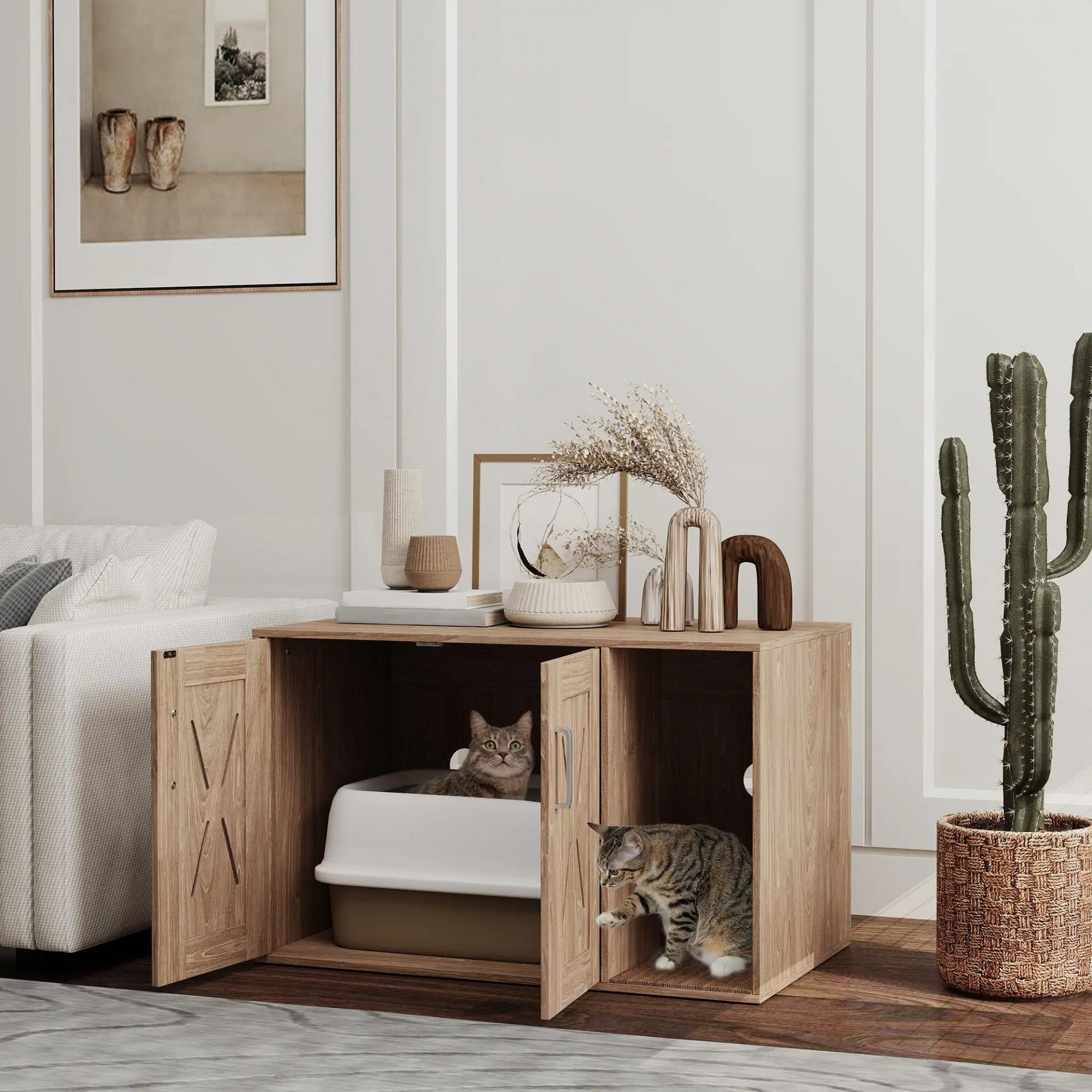 - DISEÑO DE DOBLE FUNCIÓN: Este mueble arenero es ideal para colocar la caja de arena de tu gato (no incluida) de forma discreta, a la vez que funciona como una mesa lateral moderna para decorar, guardar libros o tus objetos esenciales